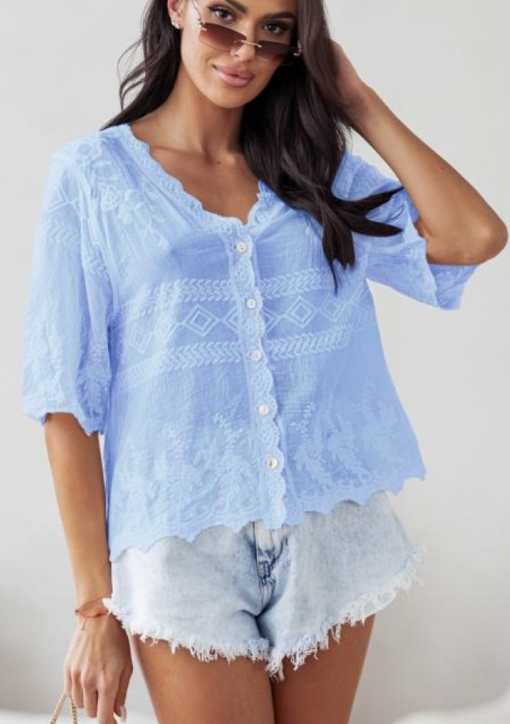 Emsig Exclusive - Sally Broderi Shirt Light Blue