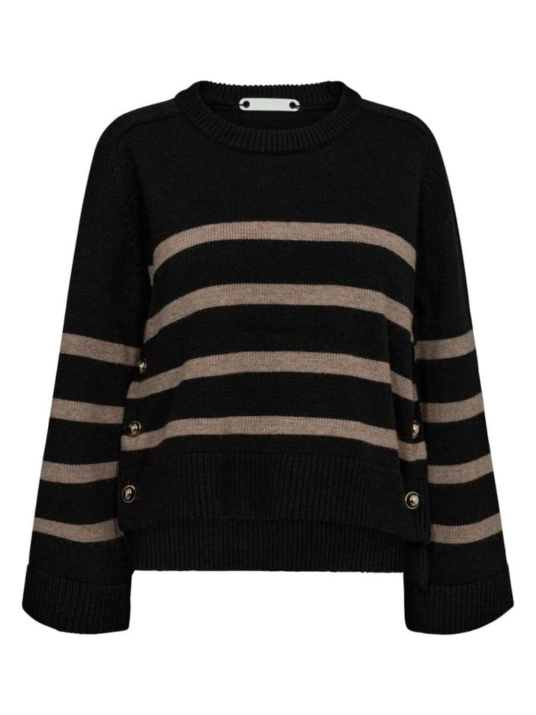 Co'Couture Strikprøve - Maja Button Stripe Knit Black