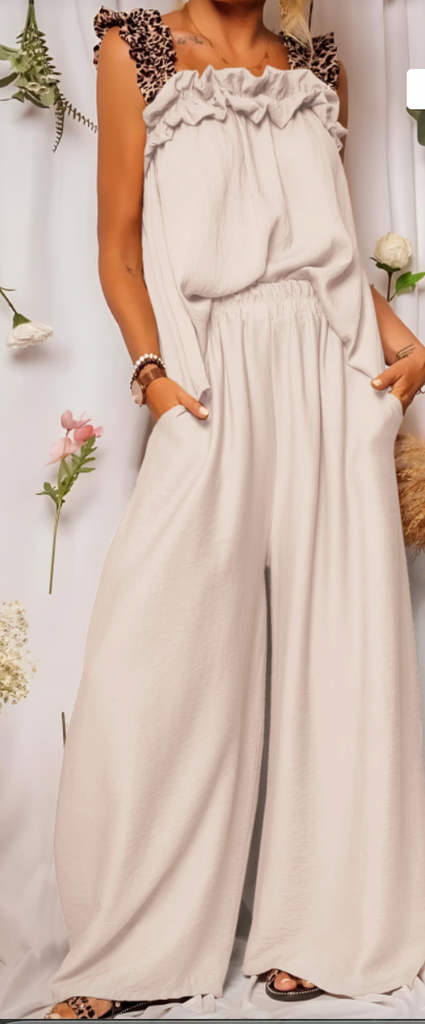 Emsig Exclusive - Leopard Top And Pants Set Beige