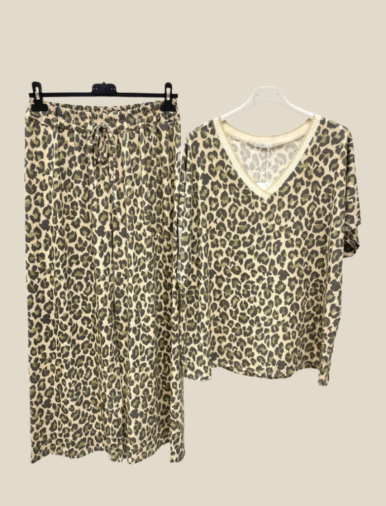 Emsig Exclusive - Leopard Print Lurex Set Taupe/Army