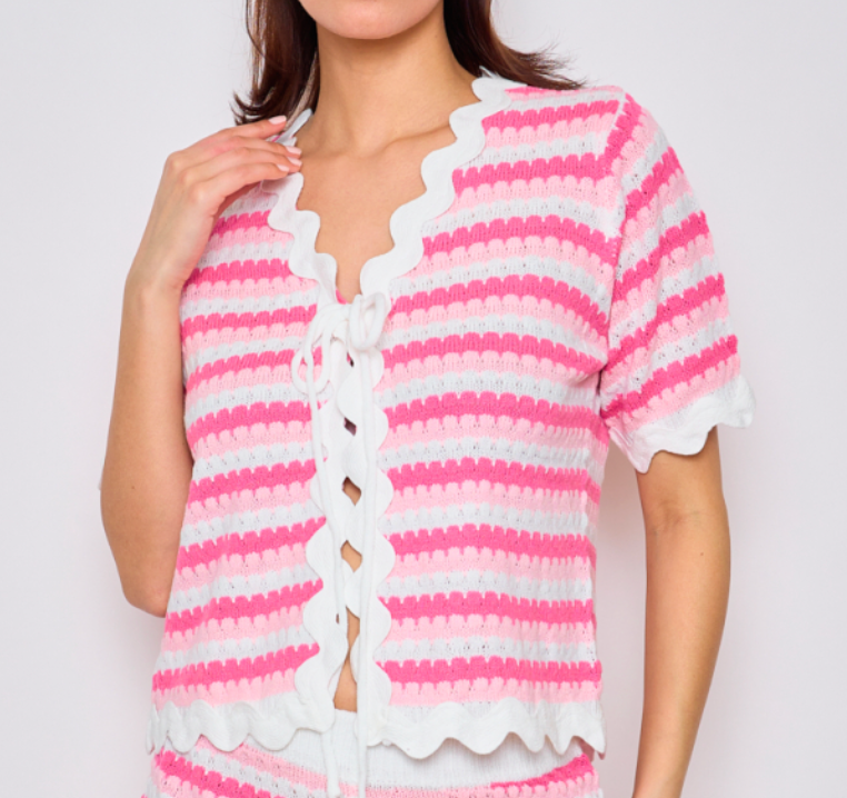 Emsig Exclusive - Frida Stripe Knitted Cardigan Pink