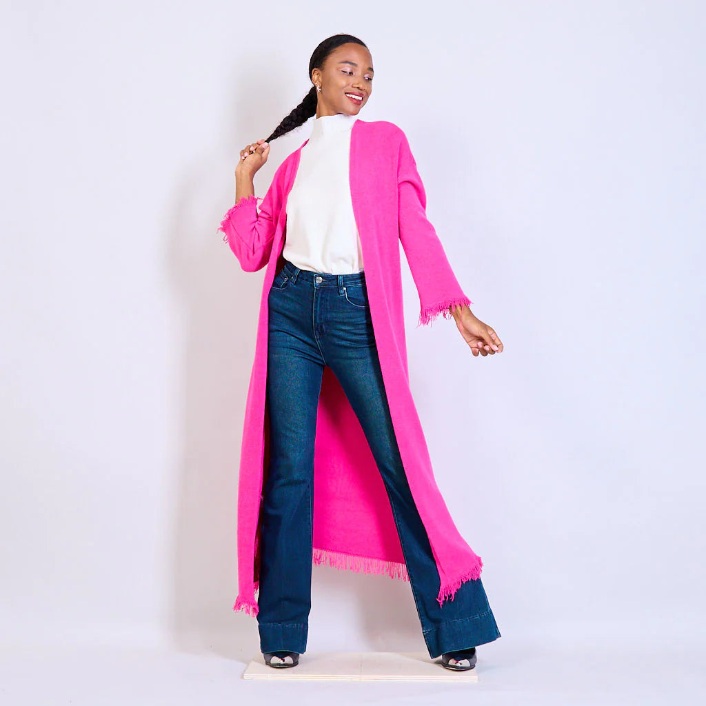 Emsig Exclusive - Lang Cardigan med Fryns