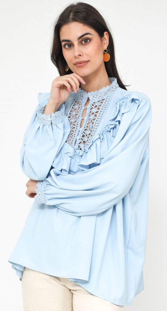 Emsig Exclusive - Live Lace Frill Shirt Pale Blue