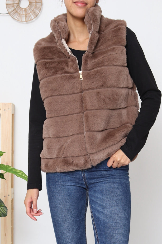 Emsig Exclusive - Mille Fake Fur Vest Taupe