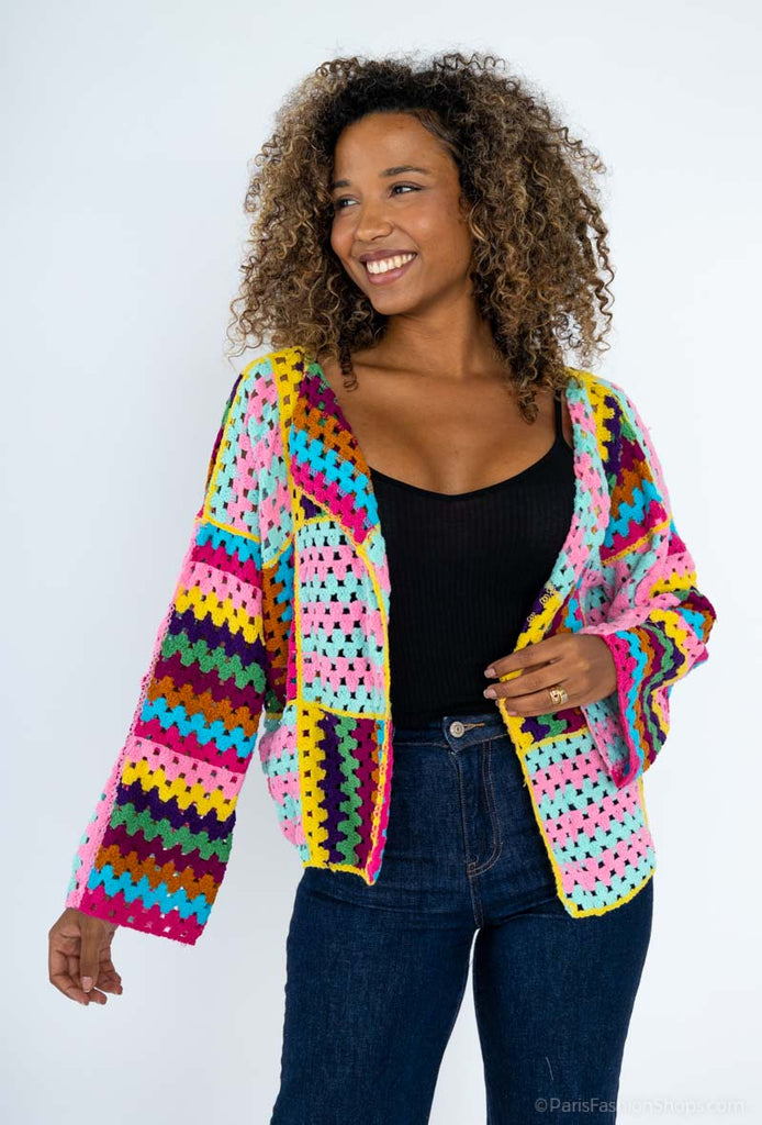 Emsig Exclusive - Multifarvet Hæklet Cardigan