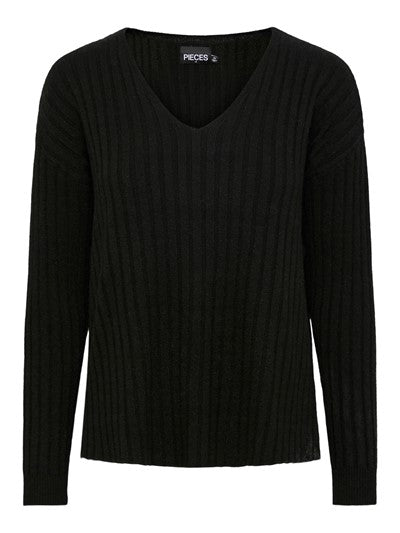 Pieces - Cava Rib Long Sleeve Knit Black - LEVERING SLUT UGE 4