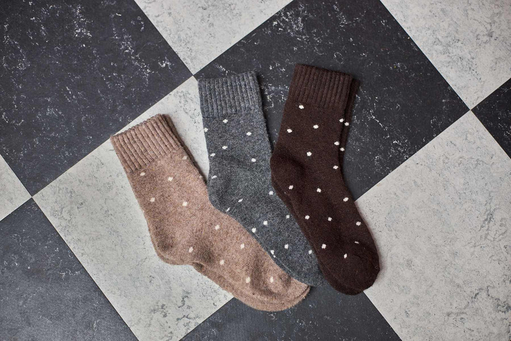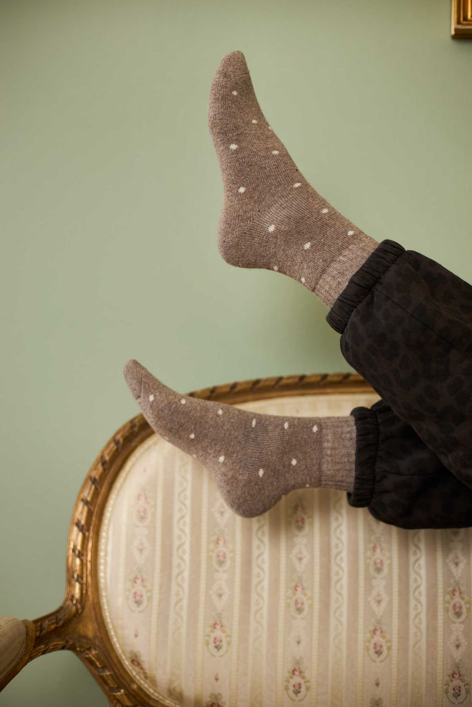 Behagelige sokker med et sødt prikkede design, de holder dine fødder varme samtidig med at de ser fine ud og er super bløde at have på.