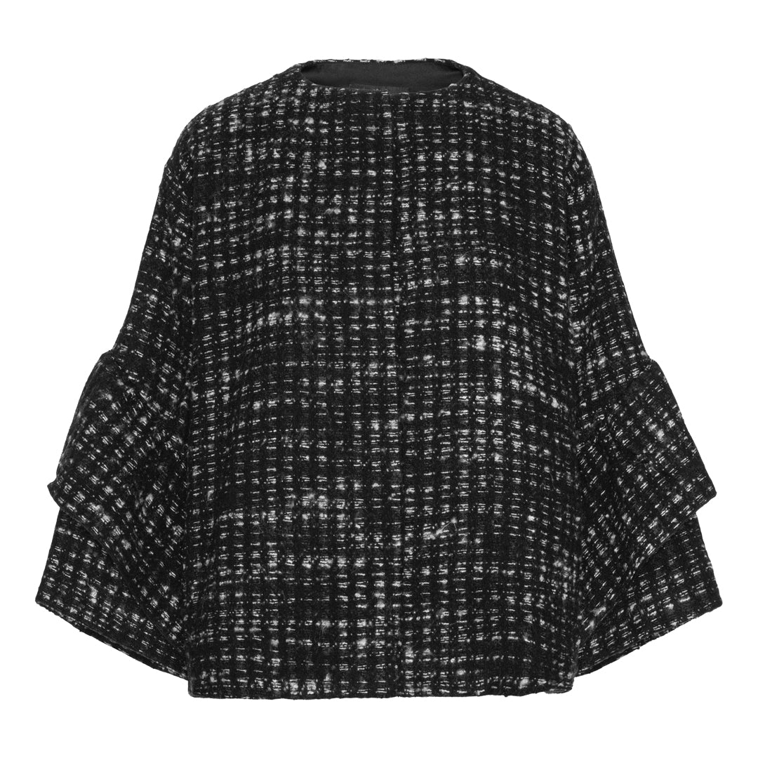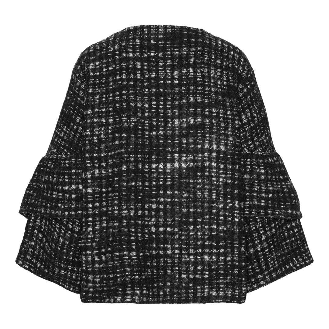 Spencer-jakken er en limited edition med kun få stykker tilgængelig i forskellige kombinationer af mønstret eller ensfarvet inderlag og uldent yderlag. Det indvendige lag er lavet af blødt og behageligt satin, mens det yderste lag er lavet af uld. Ærmerne er med peplum med flæser i flere lag og tilføjer et ekstra strejf af mode til Spencer-jakken.