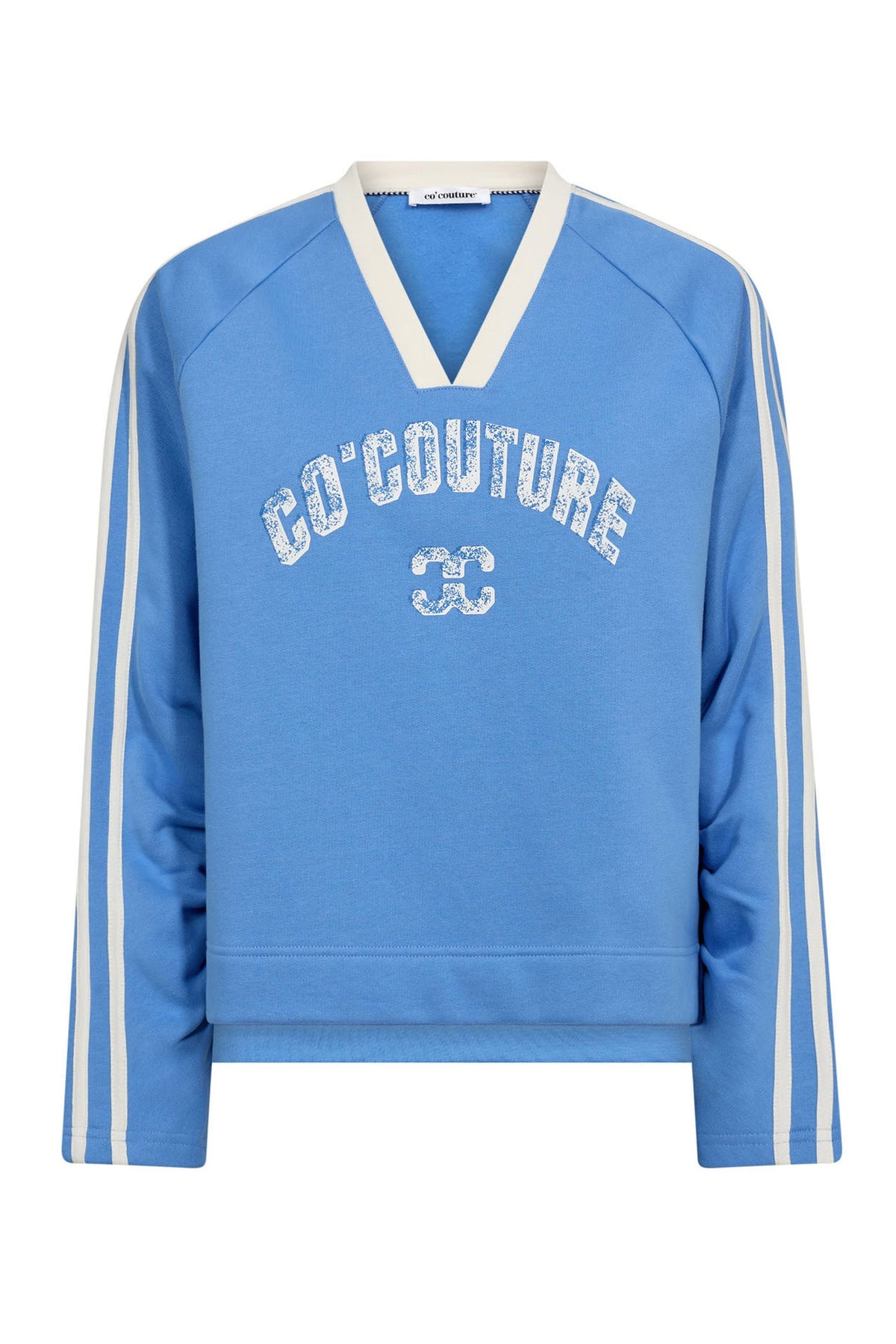 Cool sweatshirt i et sporty look fra Co'Couture. Blusen er i en skøn blå farve med lyse detaljer, har v-udskæring og logo foran.