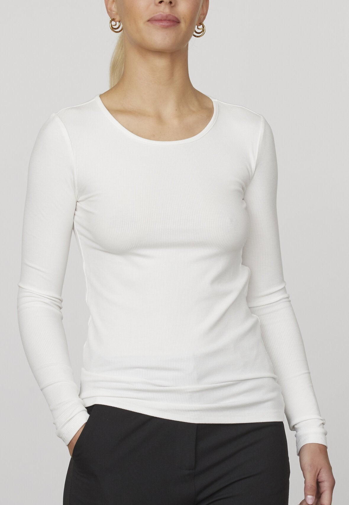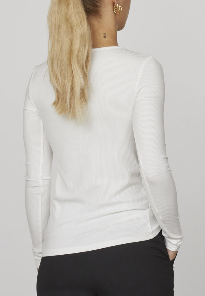 Love1215 er en ensfarvet basis bluse i en ribbet viskose kvalitet. Blusen har en rund hals og en tætsiddende pasform. Den er super lækker og dejlig mod huden.