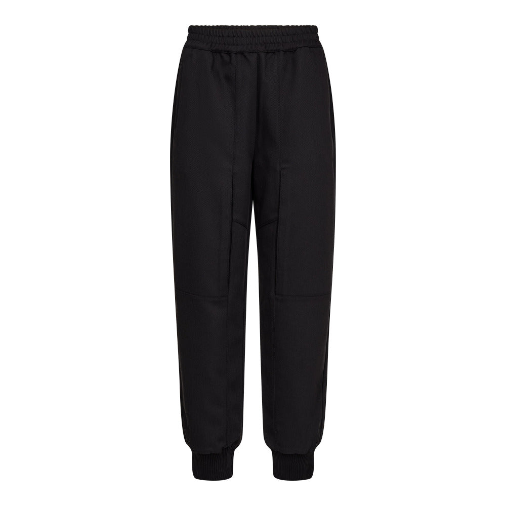 Den lækreste habitbuks fra Co'Couture i et cool cargo look. Buksen har en lækker kvalitet med let struktur i metervaren. Derudover har den elastik i taljen og en sej strikket rib kant som afslutning i bunden. Buksen har skrålommer foran og paspolerede lommer bagpå.