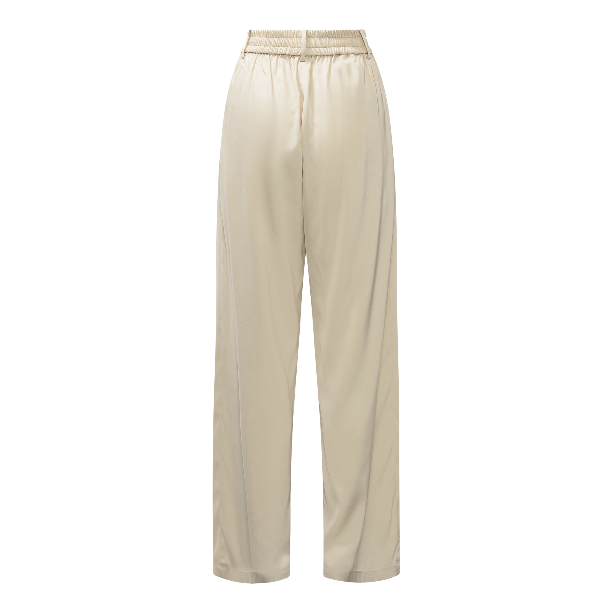 Den lækreste bukse-nyhed fra Karmamia. Buksen er højtaljet, med vidde ben og de fineste læg ned foran. Desuden har den både bæltestropper og elastik bagtil.