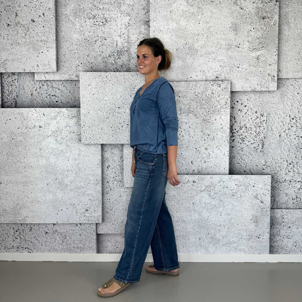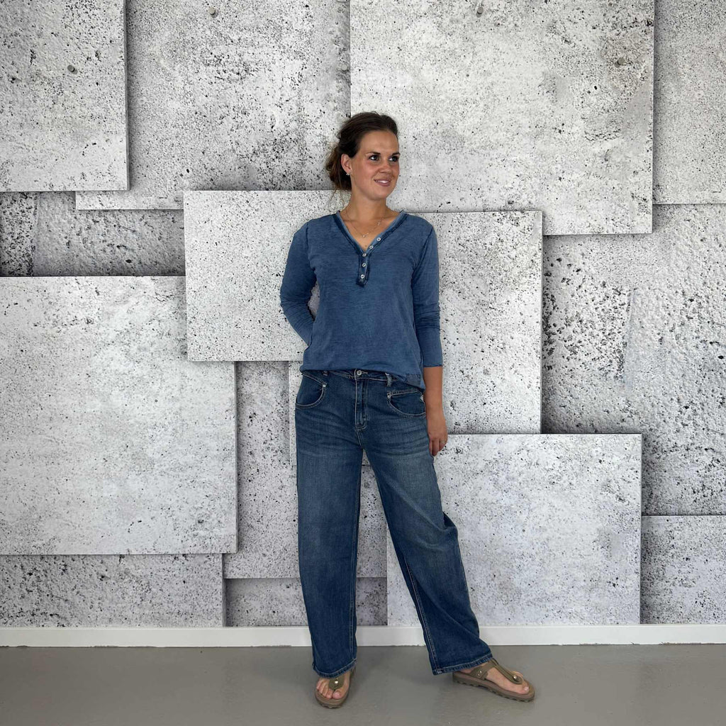 Den lækreste let baggy jeans i den trendy barrel facon, som kommer i mellemblå denim farve. Jeansen er smør blød i kvaliteten, har en mellemhøj taljehøjde, og god pasform bagpå.