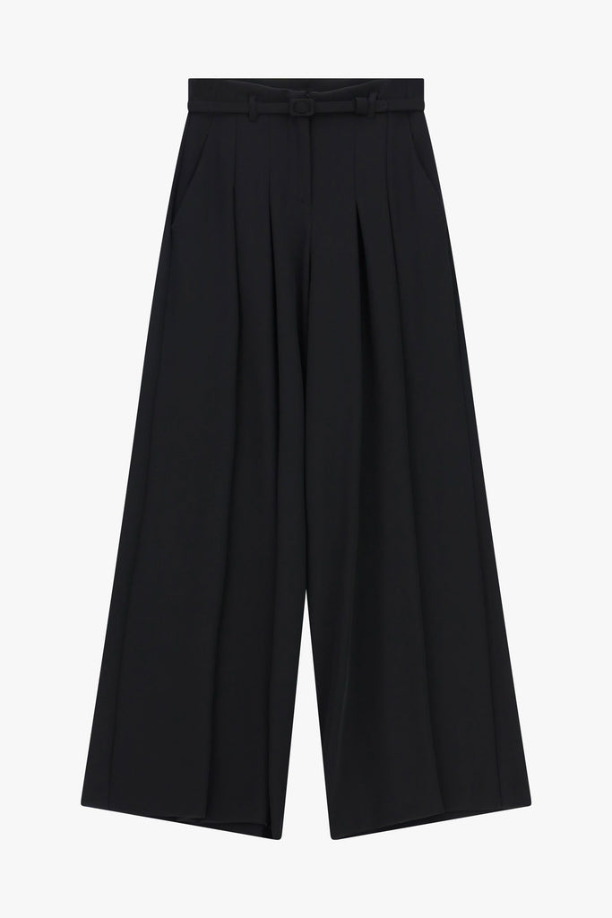 Den smukkeste selskabsbuks fra Imperial med det helt perfekte snit til kvindekroppen! Buksen har et fast stykke rundt om maven, og har så læg ned foran som falder blødt ned om kroppen og giver en elegant vidde nede i benet. Derudover har busken bæltestropper, skrålommer foran og en gemt lynlås lukning. Bukserne er i den klassiske italienske metervare, som både er farveægte og krølfri.