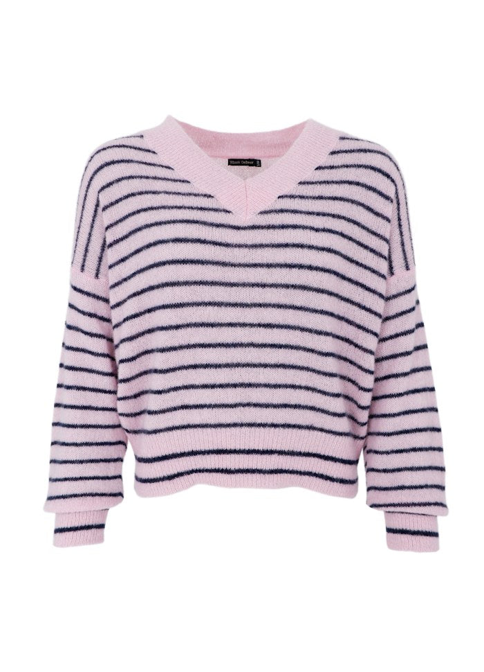 Black Colour - Dell Striped V-Neck Jumper Rose
