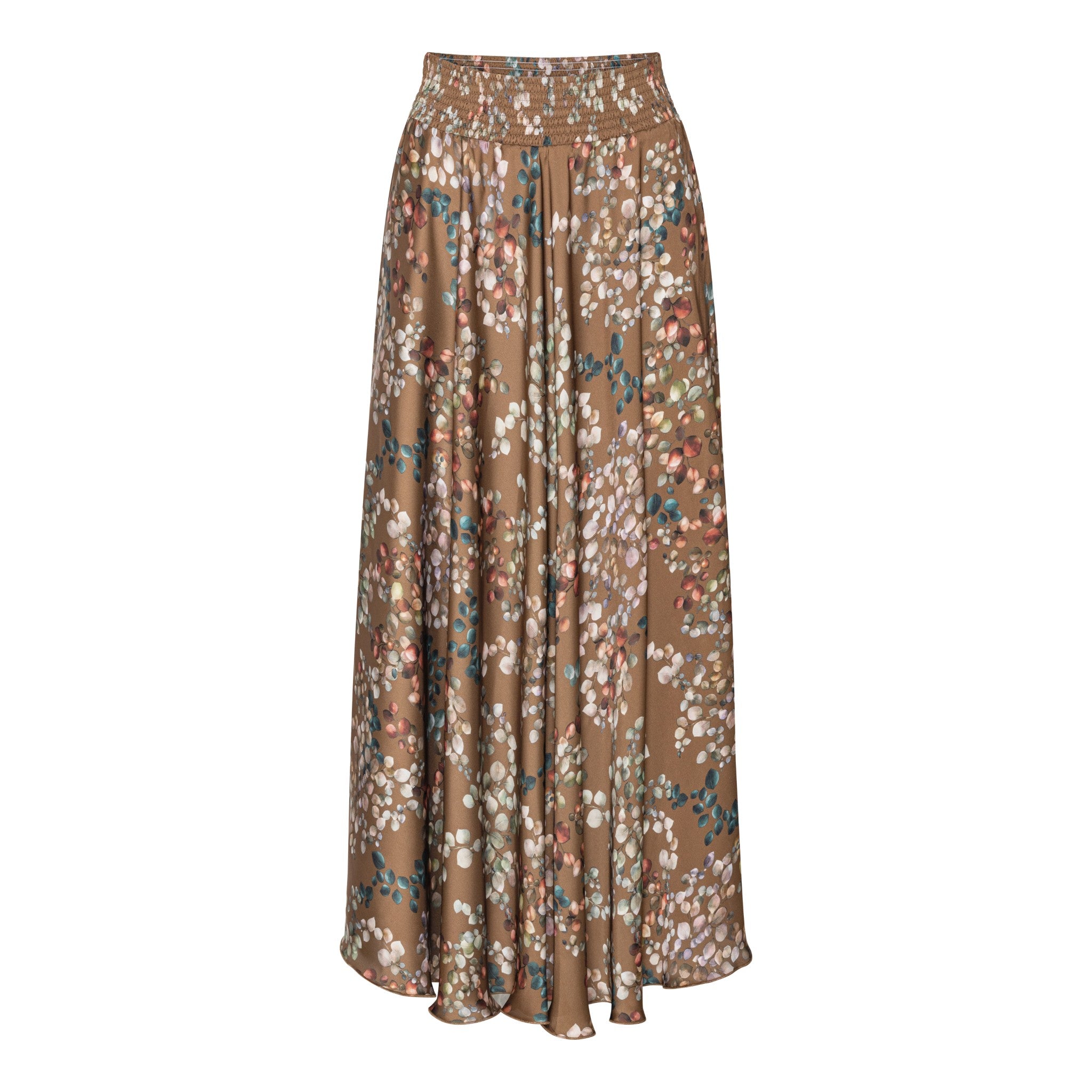 Smuk nederdel fra Karmamia med bred elastik i taljen og smukt fald. Nederdelen er onesize og er her lavet i den smukkeste efterårsprint.