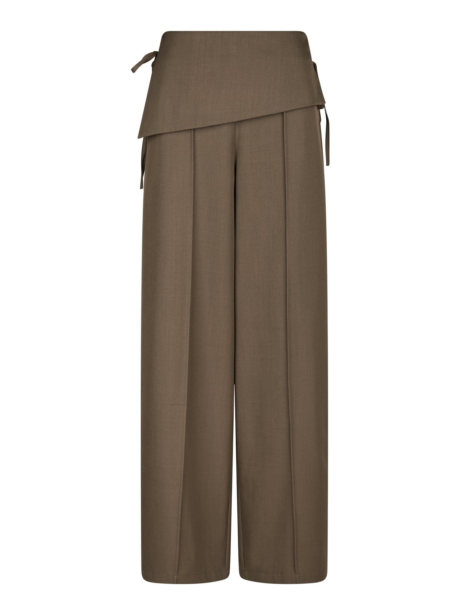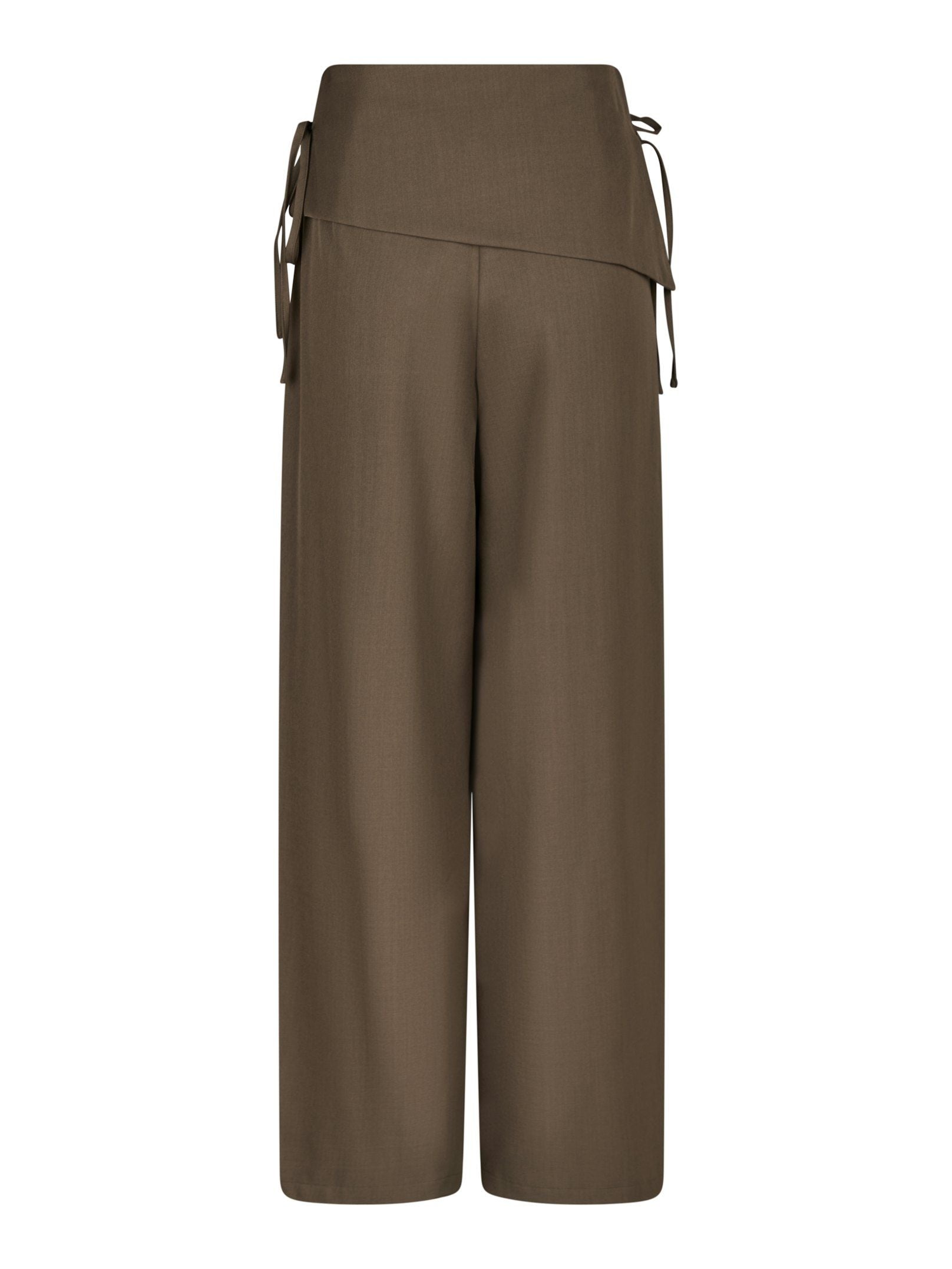 Neo Noir Deani Fold Pants Taupe er højtaljede bukser med bredt ben og en markant   fold-over detalje i taljen, med en sød lille bindning. De har et rent, minimalistisk look i en lækker taupefarve og falder flot i stoffet. Enkle, stilrene og perfekte, hvis du vil have et moderne og elegant udtryk.