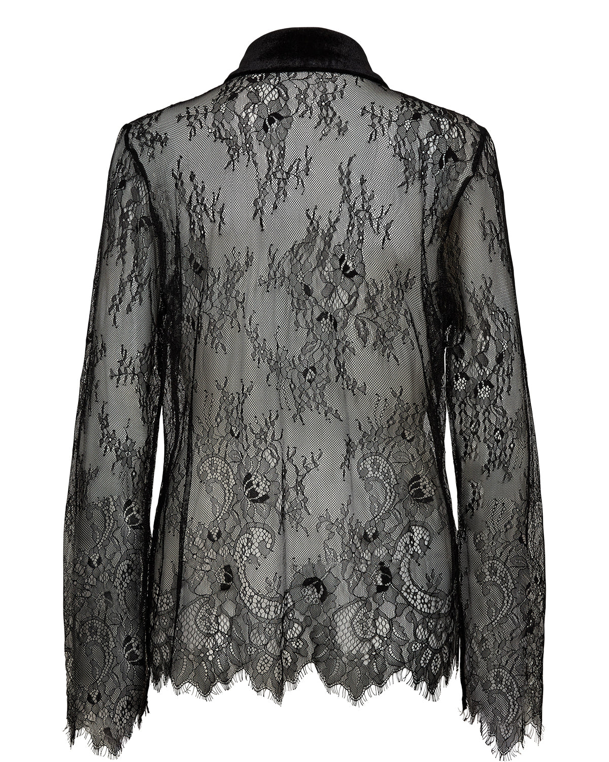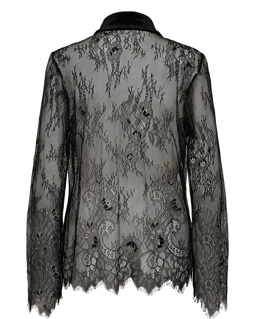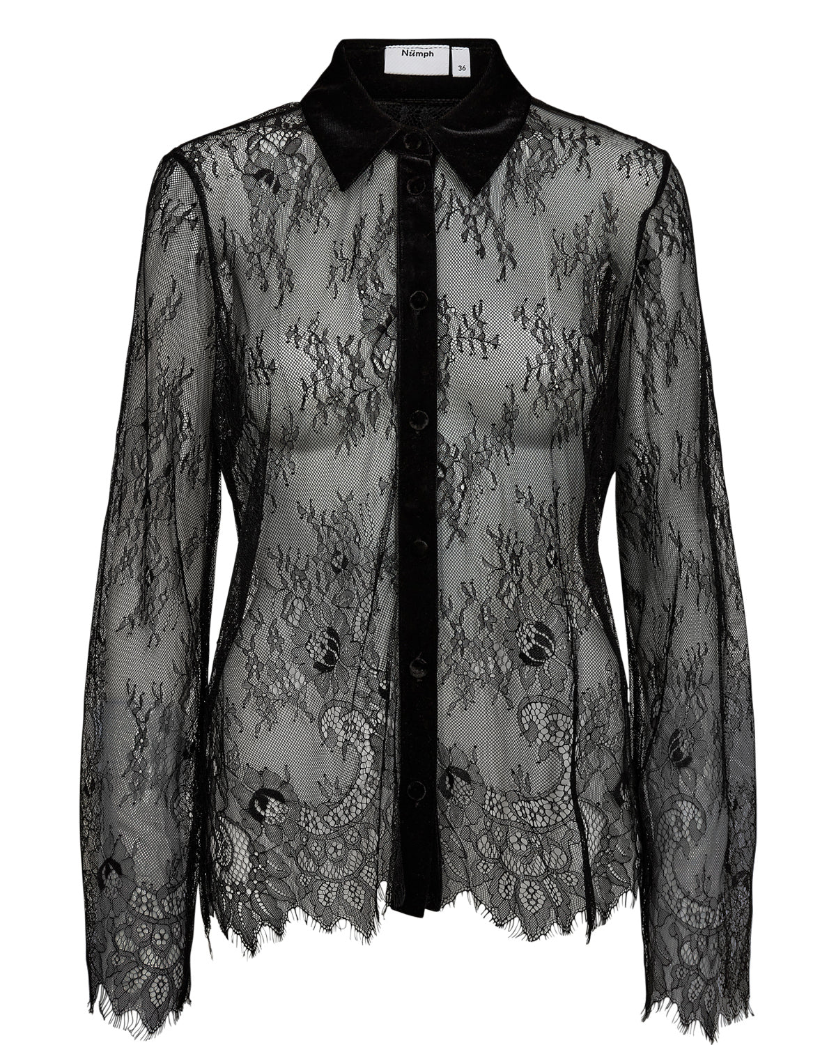 Smukkeste blonde skjorte med i et super feminint udtryk. Kanterne er rå, og kraven samt knappelukningen har en påsat velour lignende kant. Gennemført ned til sidste detalje og perfekt som en smuk styling under strik og lignende, samt for sig selv til fx en julefrokost.