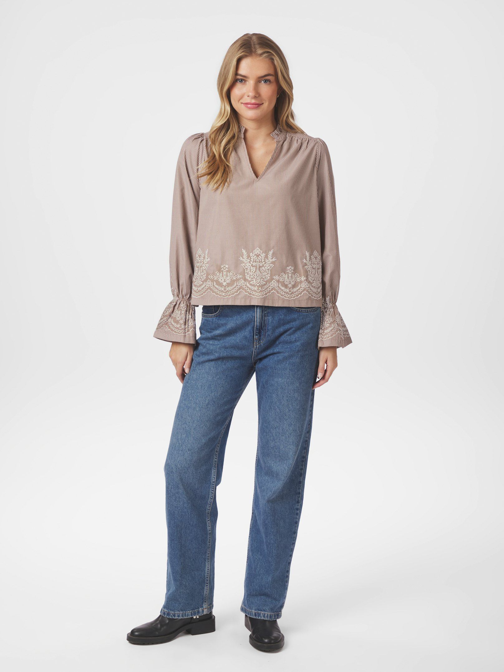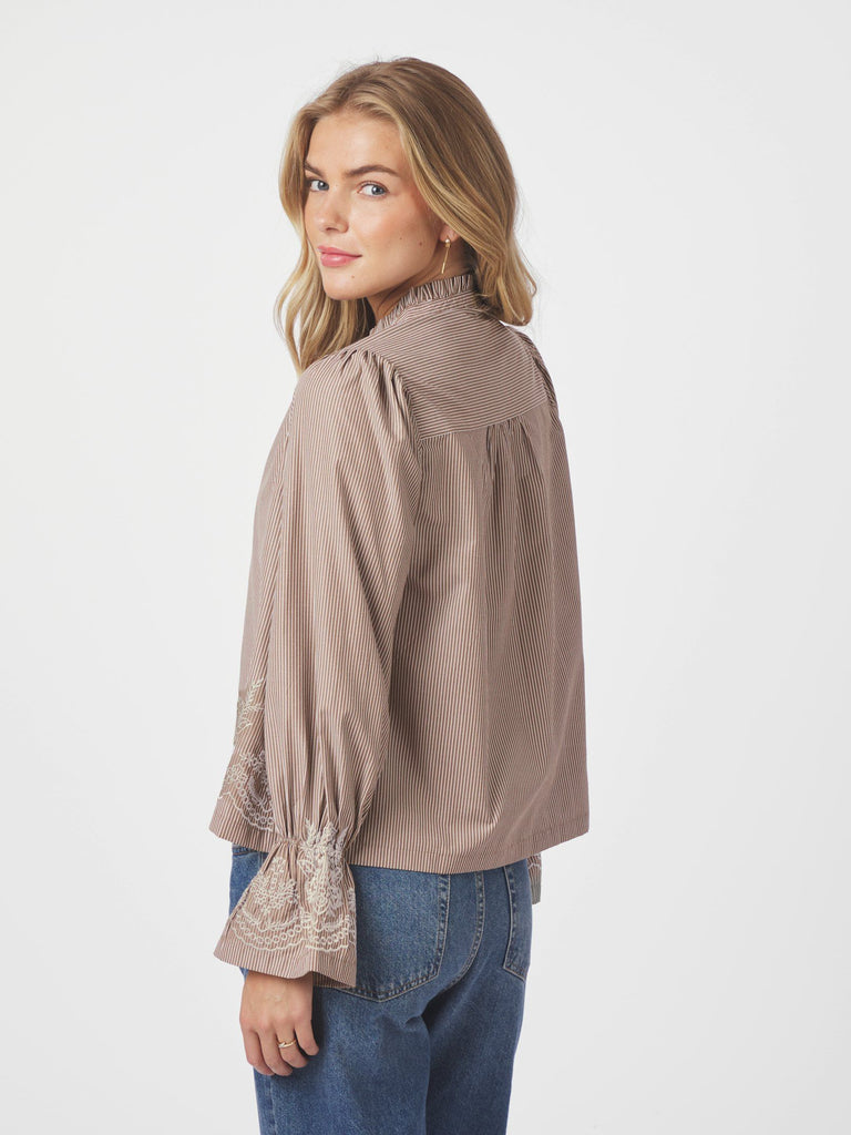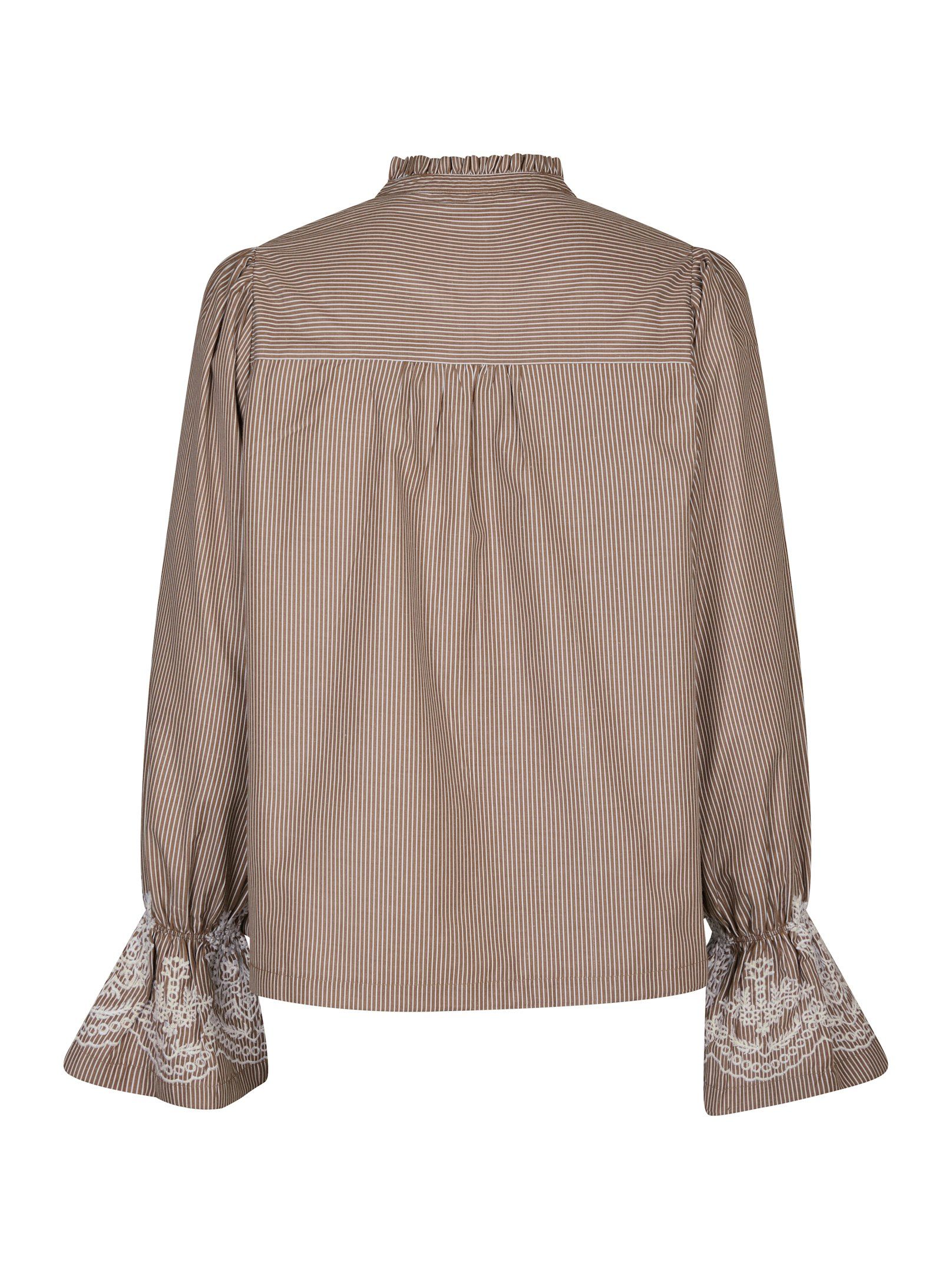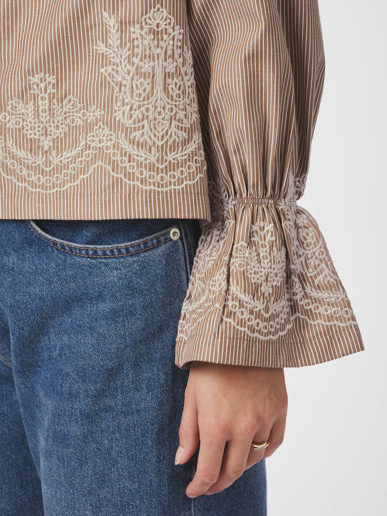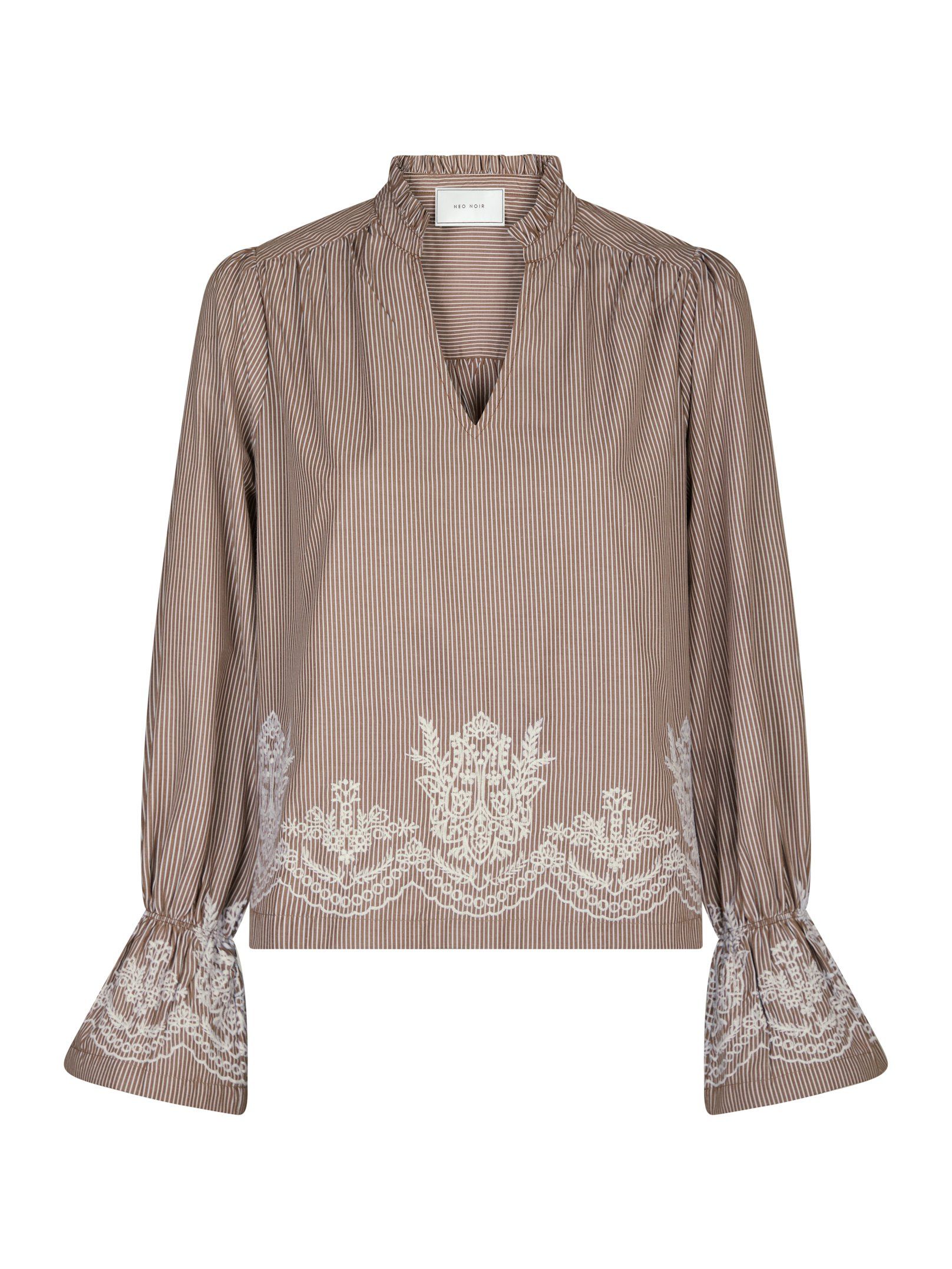 Neo Noir - Amara Stripe Embroidery Blouse Camel