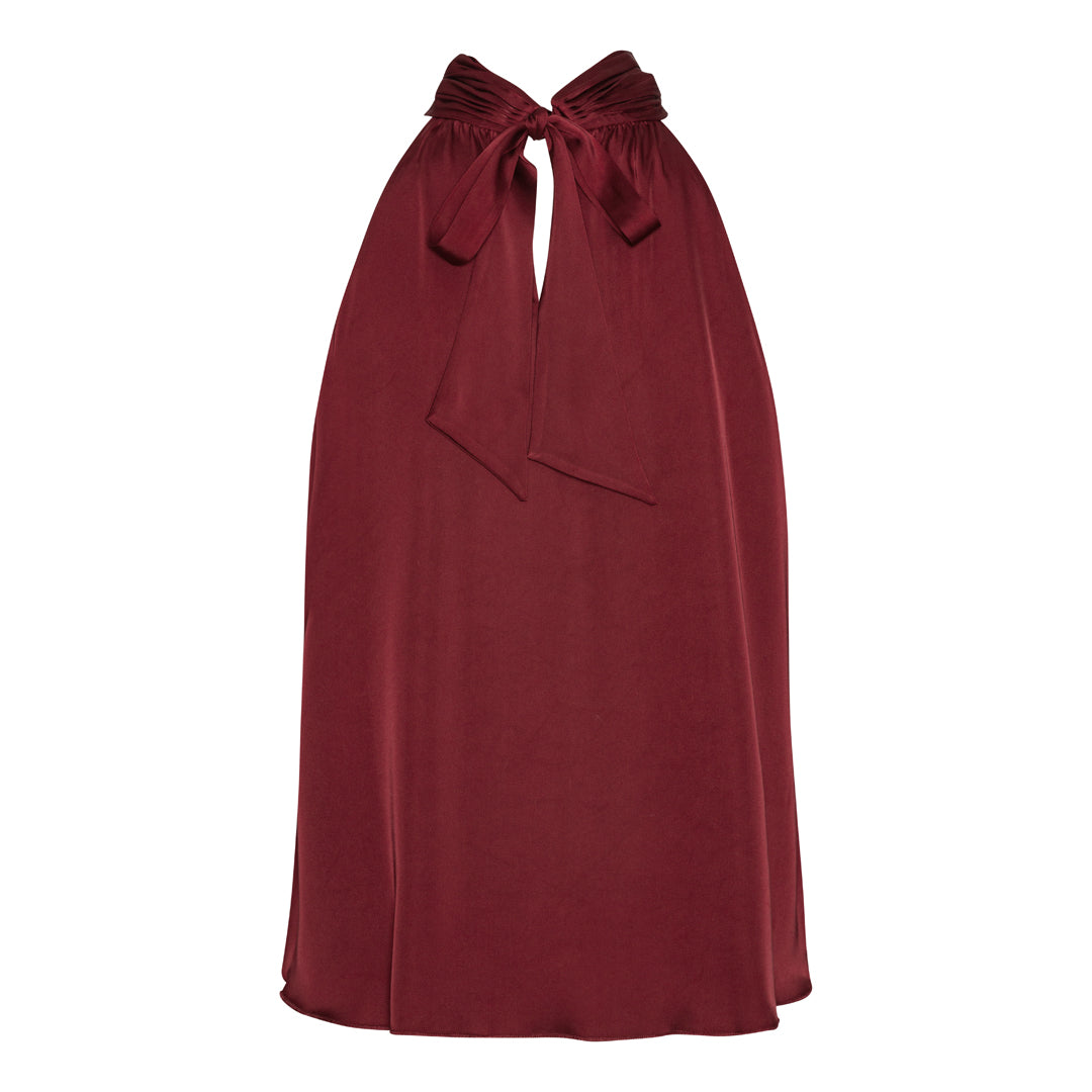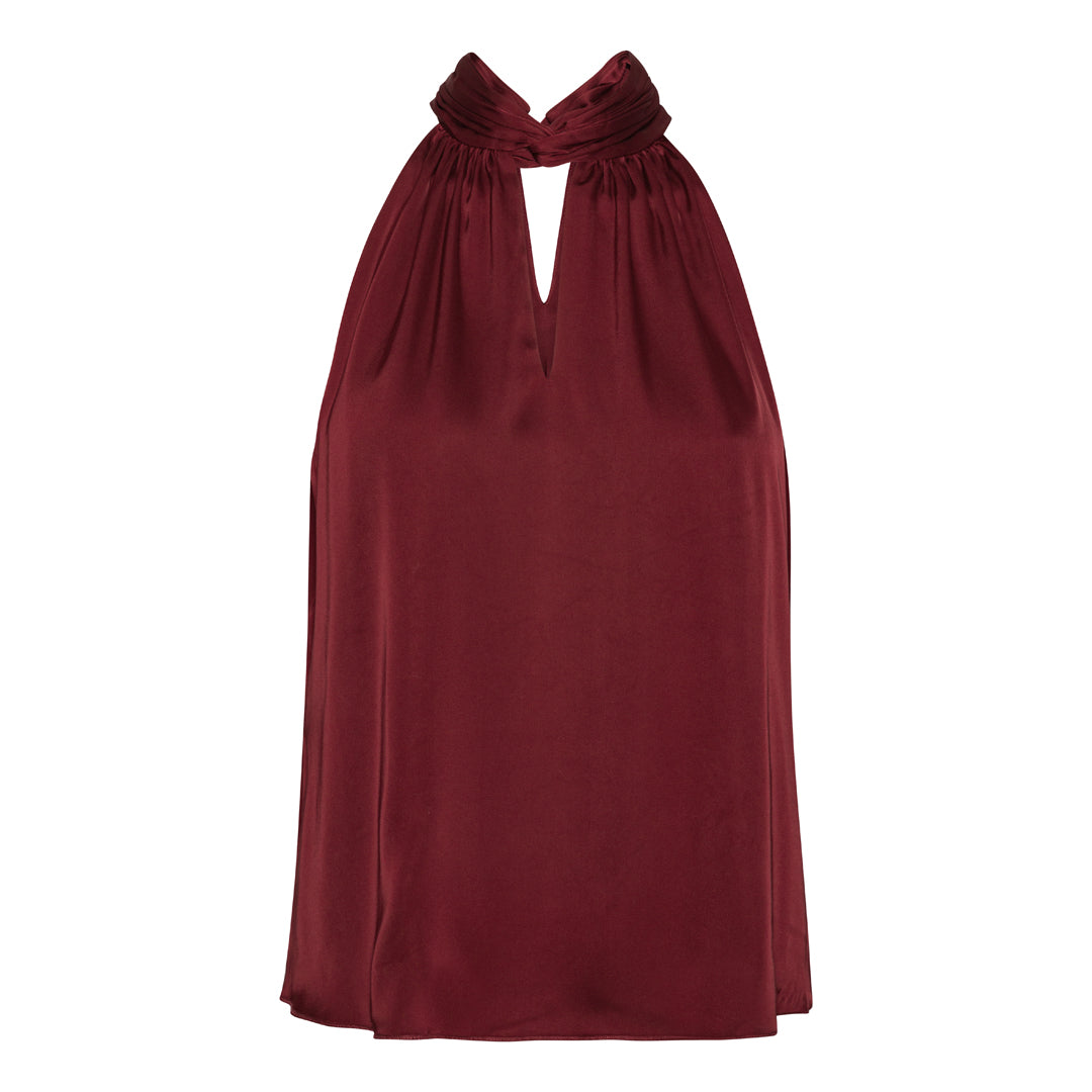 Stilfuld halter-neck top med lavt V-snit og smukke flæseeffekter rundt om halsen - nu i den smukkeste guldfarve. Style den til et par jeans for et cool look, ellers med de matchende guld bukser får et genneført og elegant look.