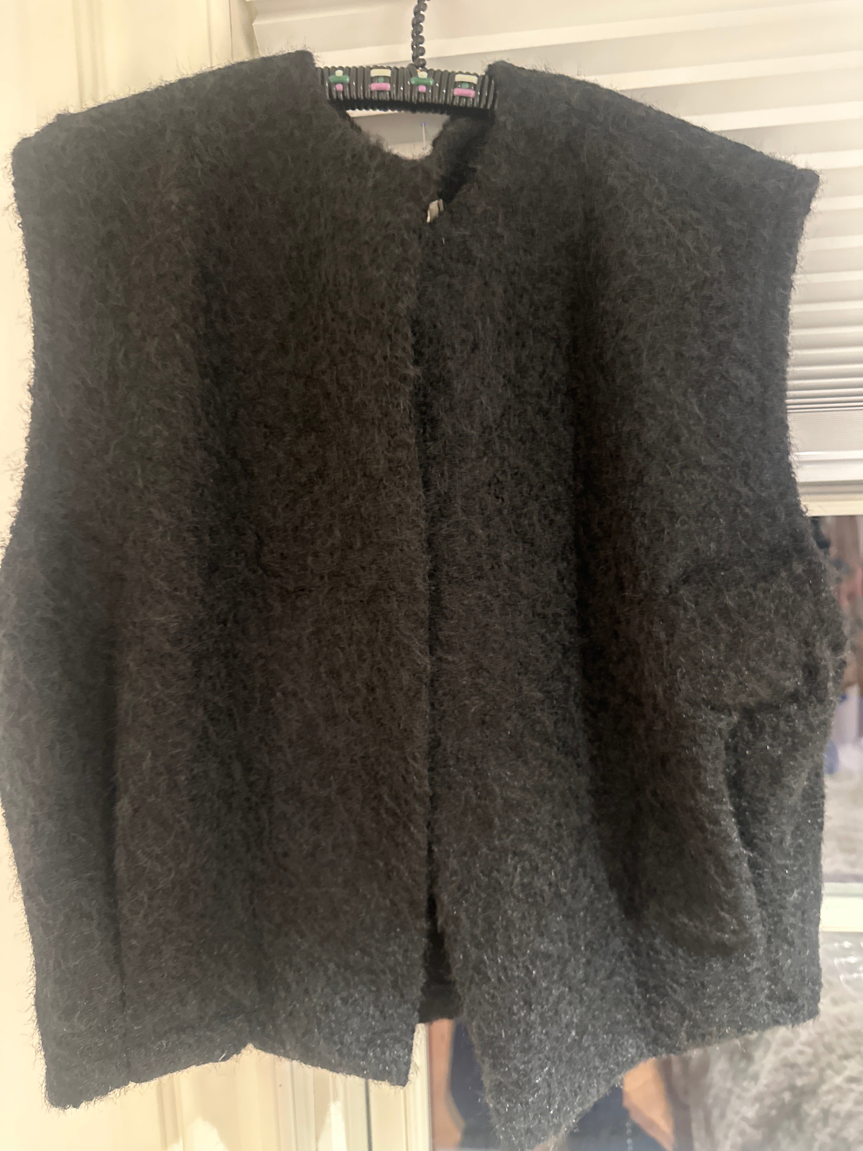 Super cool "filt" vest. Med plads i ærmegab til strik osv indenunder. Lige op og ned pasform dog med et lille snit ind forneden,.
