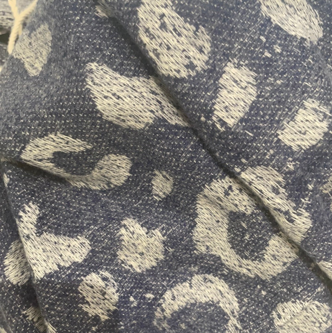 Super bløde tørklæde i diskret blå Leo . Med frynser i enderne 60% viskose 30% bomuld 10% LaineStørrelsesdata