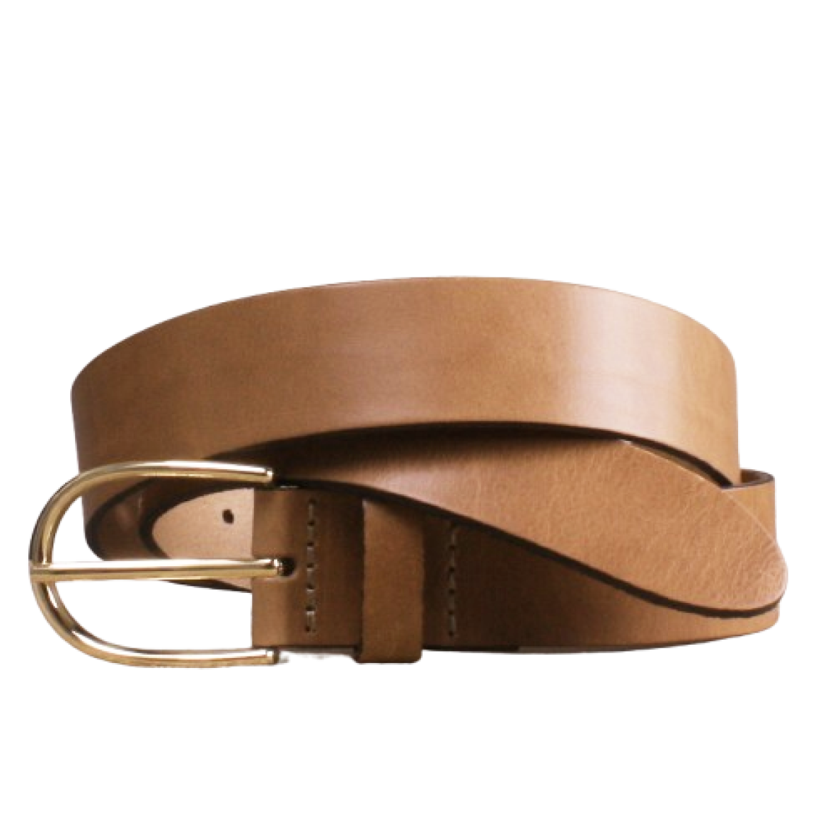 Simpelt og lækkert bælte. Bæltet måler 3,5 cm i bredden og lukkes med et guldspænde foran.