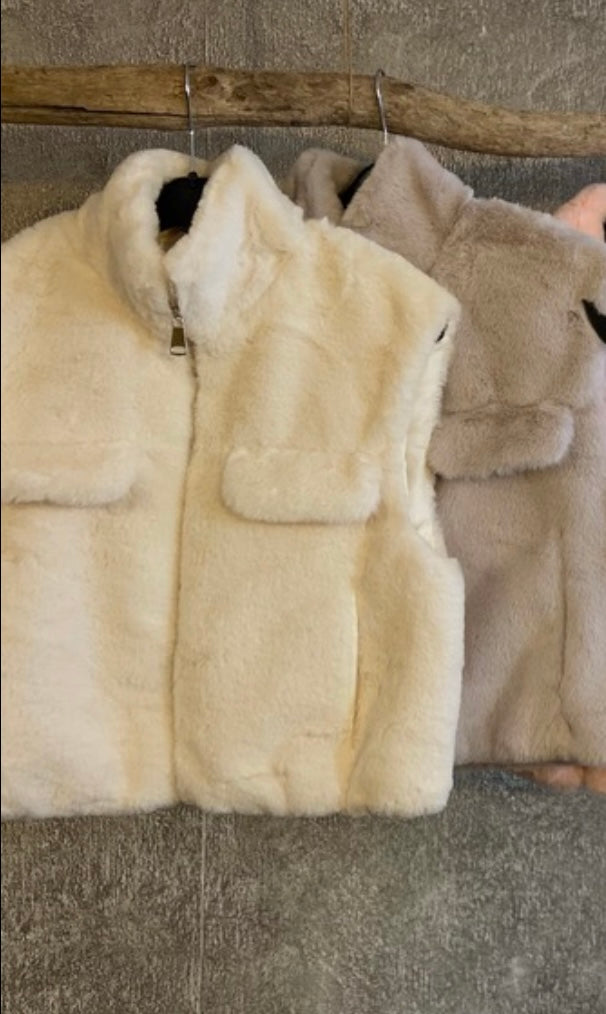 Den flotteste fake fur vest fra Bæltekompagniet. Vesten er i en kort model med lynlåslukning fortil og snydelommer over brystet. I den blødeste kvalitet og foret på indersiden.