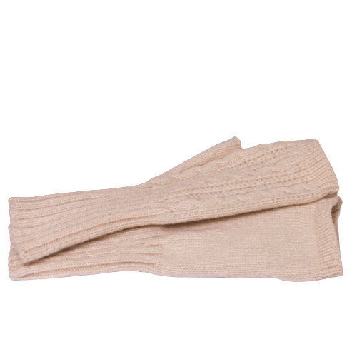 Beige fingerløs strikvante fra Bæltekompagniet.