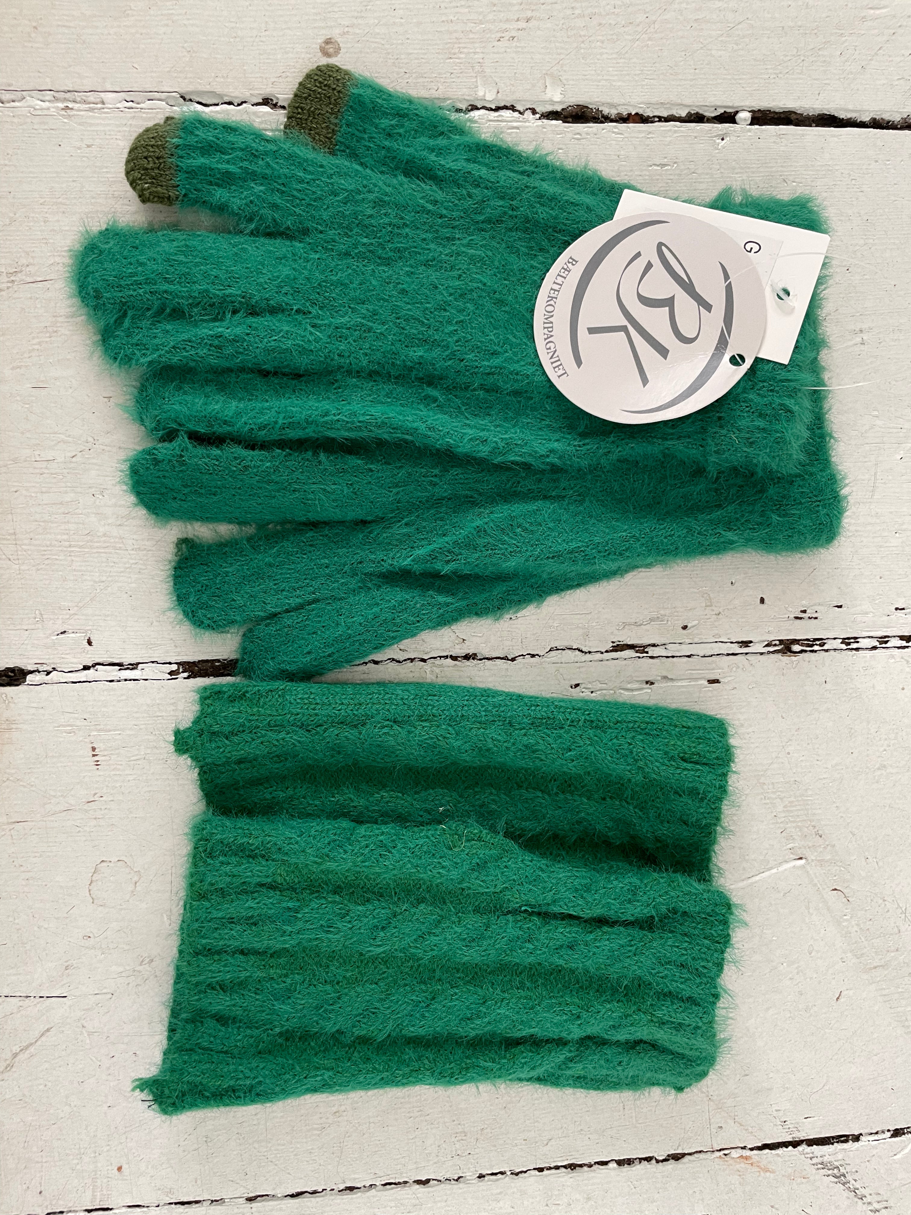 Lækre grønne vanter fra Bæltekompagniet i en double pakke. Pakken indeholder et par fingerløse vanter og et par almindelige.