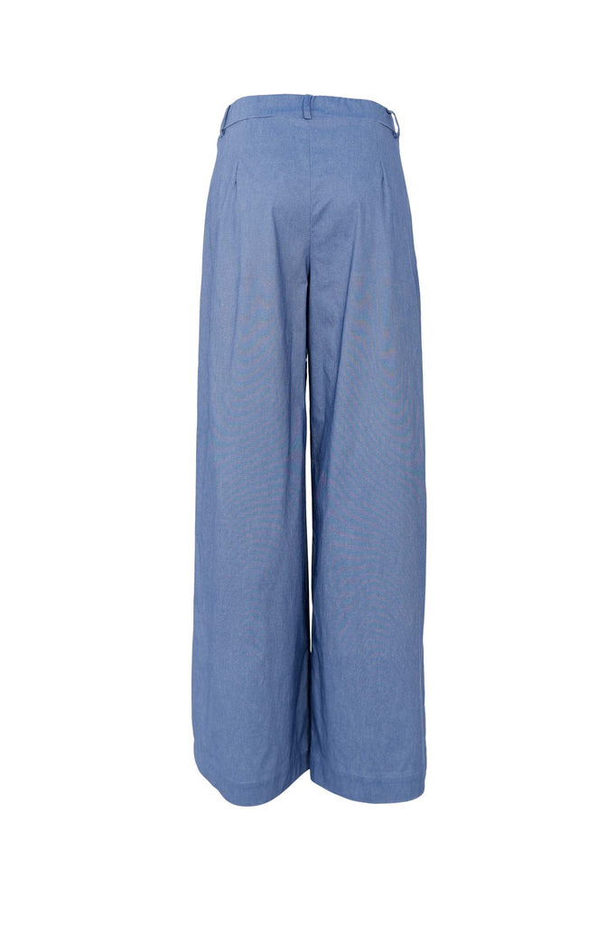 Klassisk buks fra Black Colour med lommer fortil, blød elastik i taljen og vidde i benene. Buksen har desuden bæltestropper og høj talje, og kommer her i en cool meleret denim farve.
