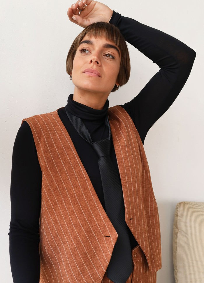 Cool satin slips med stribet struktur i sort.