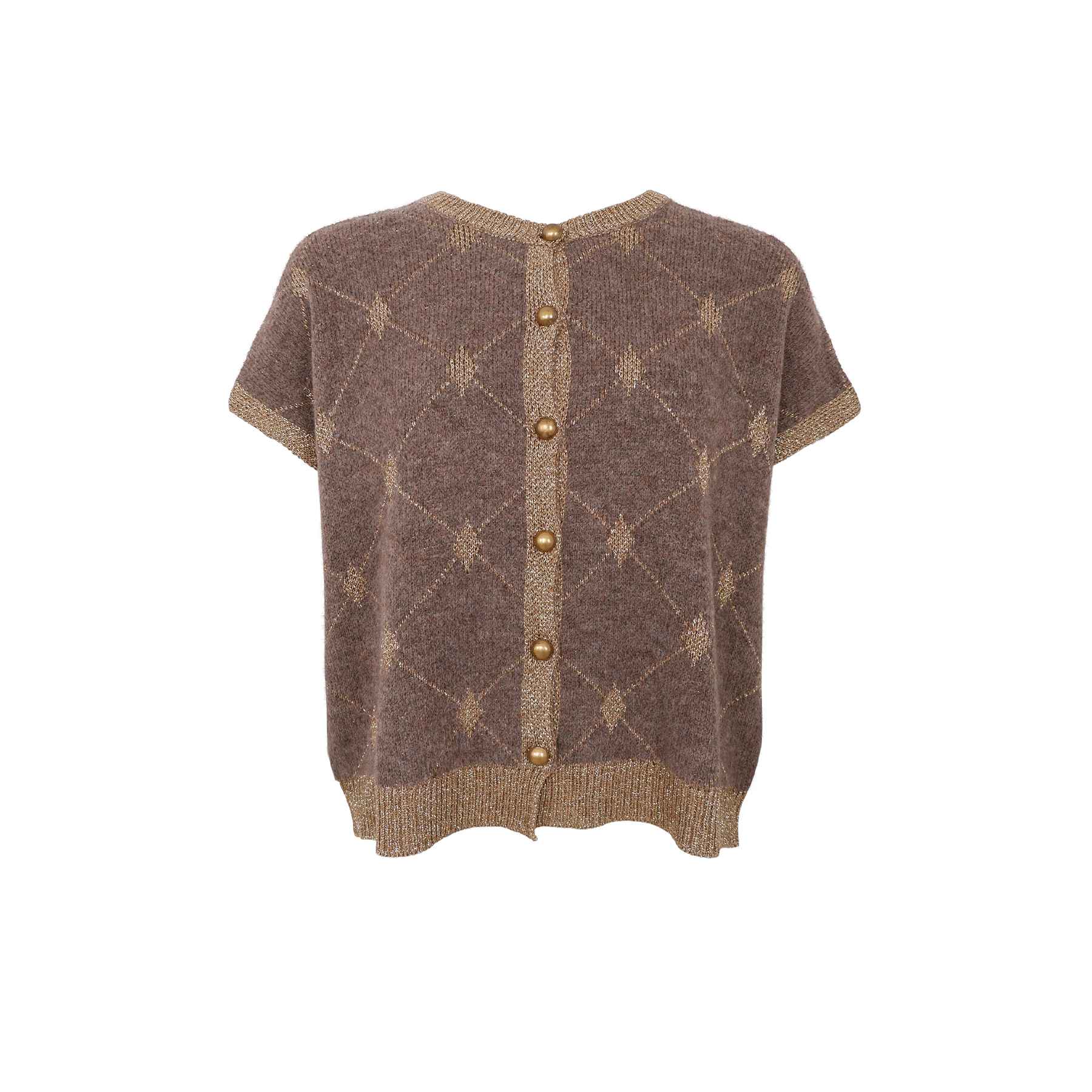 Super smuk strik vest i gyldne farver brun og taupe og med guldknapper.
