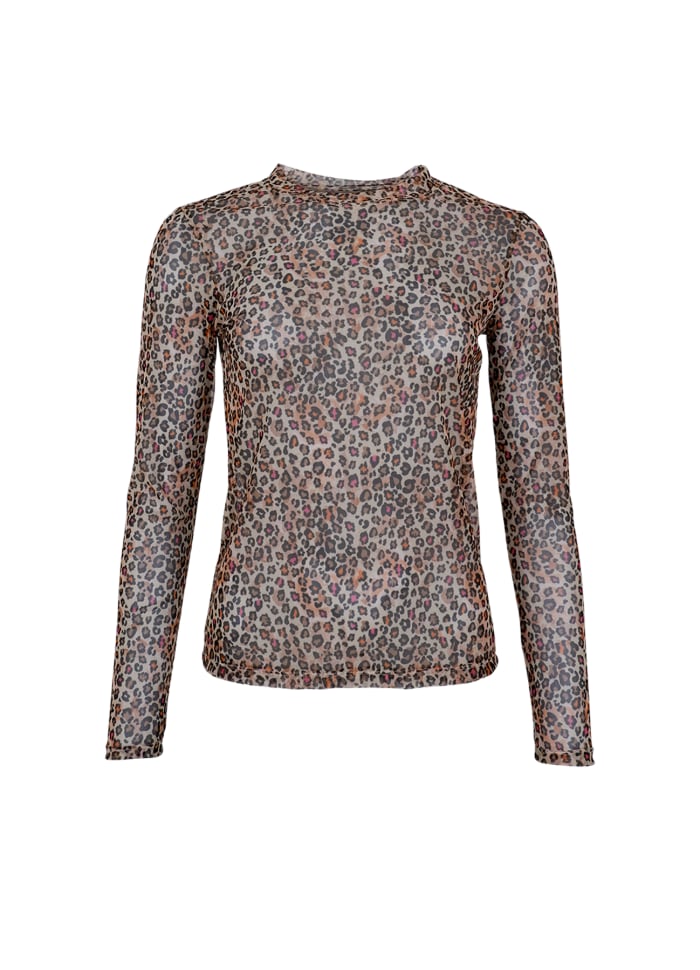 Skøn meshbluse fra Black Colour. Bluser er i et flot leoprint, med rund hals og lange ærmer.