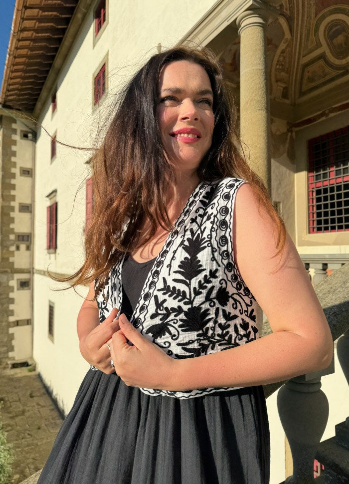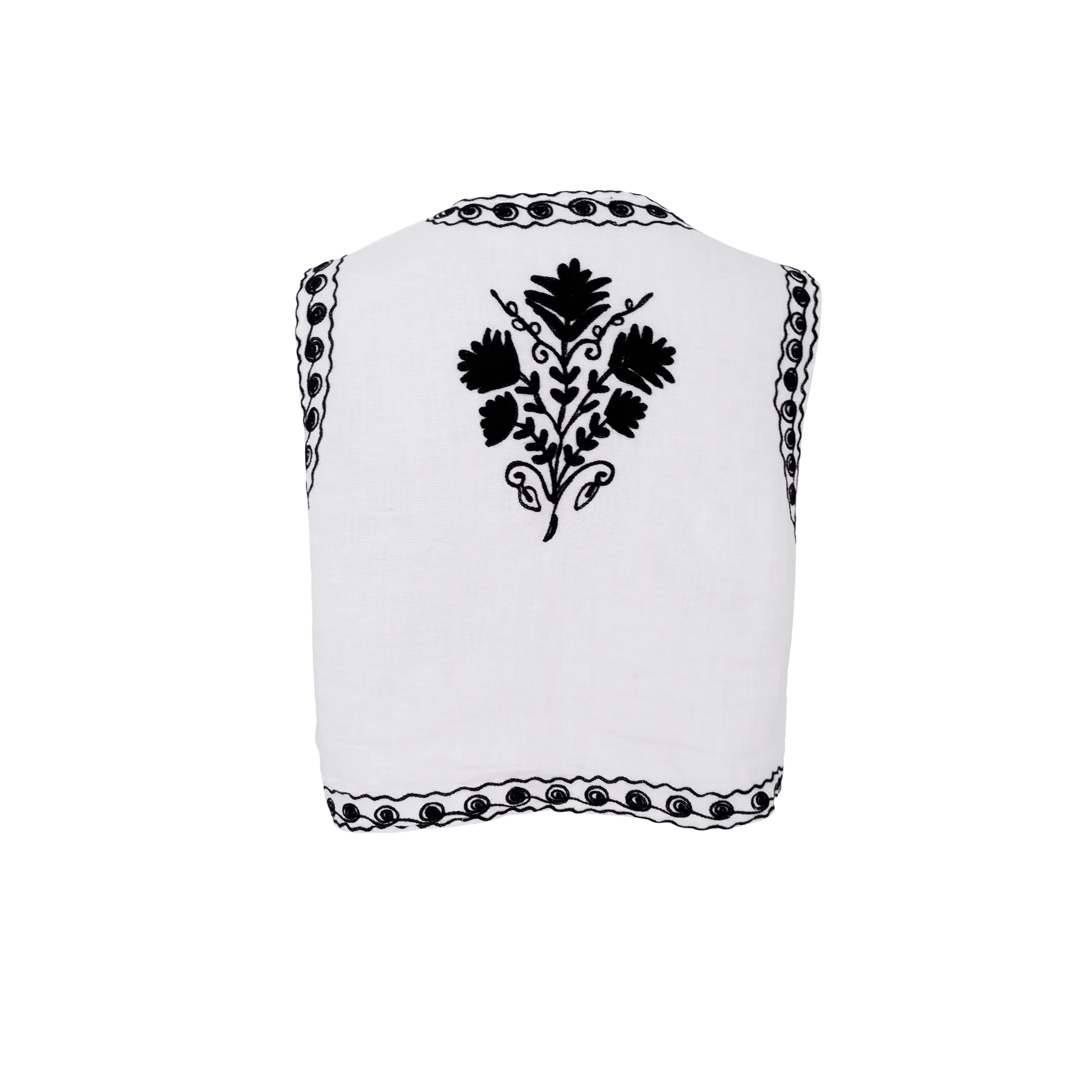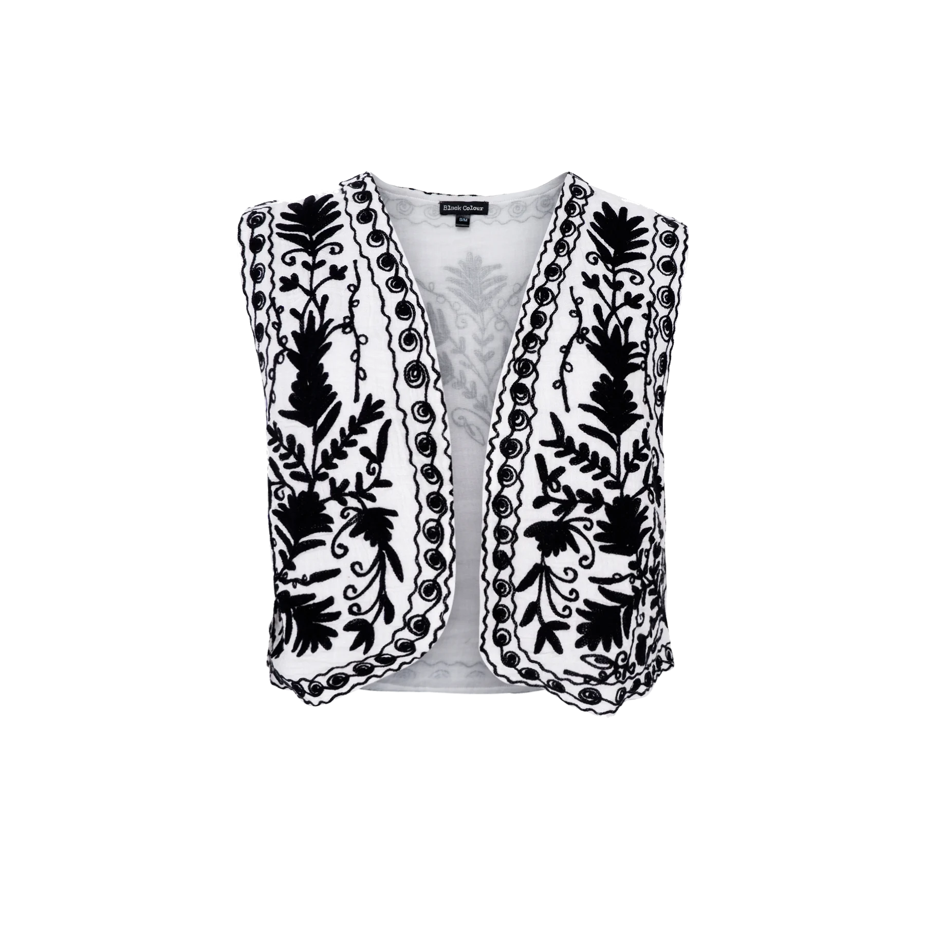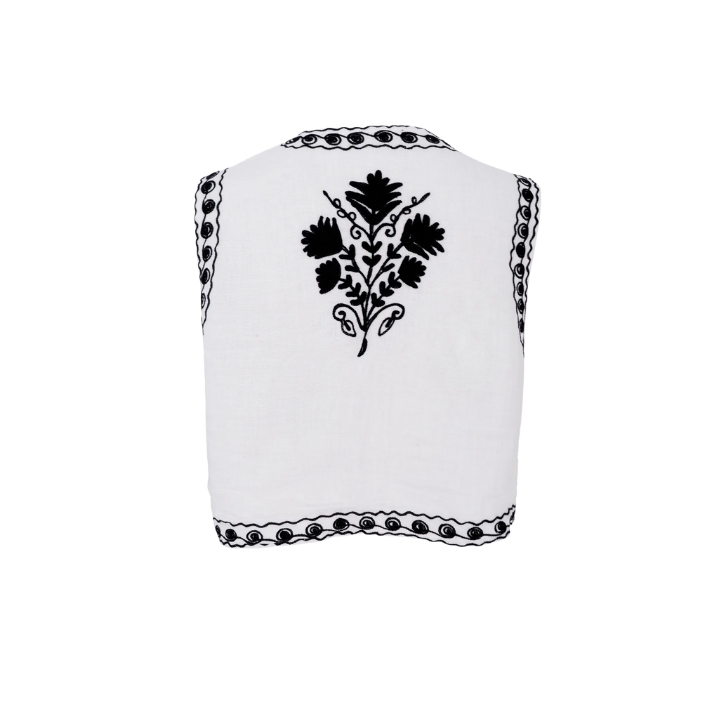 Cool vest i hvid fra Black Colour. Vesten har en cropped længde med fine broderier for-og bagtil.