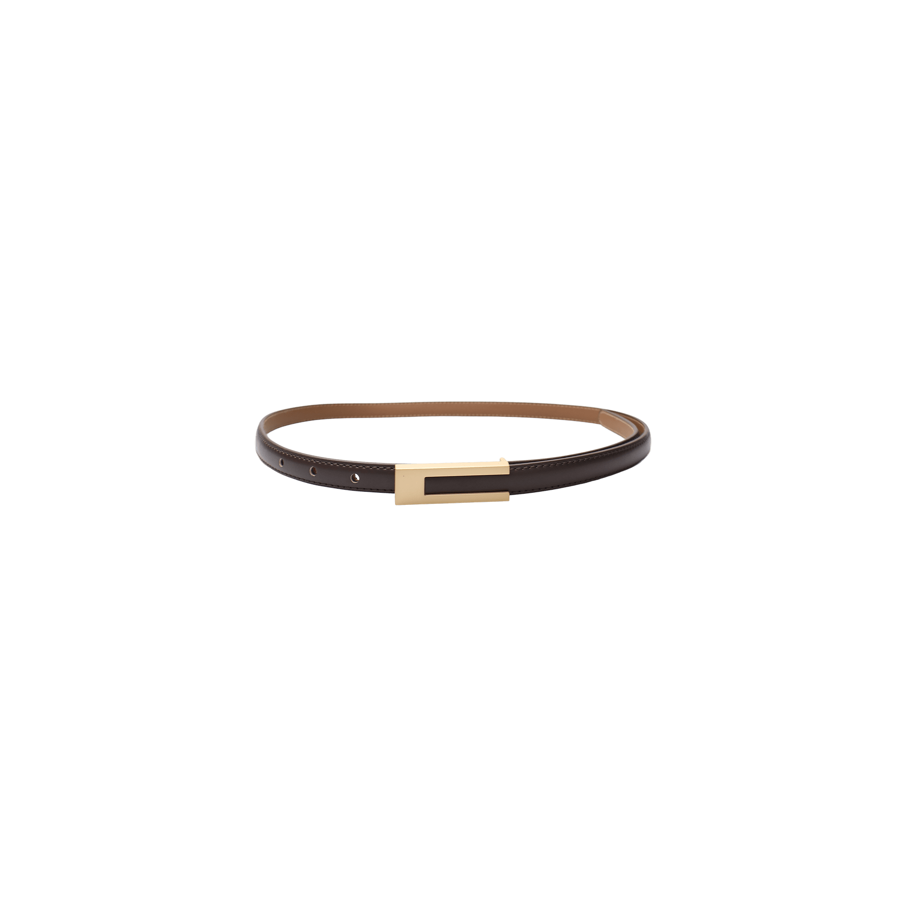 Black Colour - Kate Slim Metal Buckle Belt Coffee