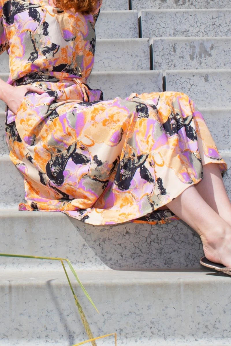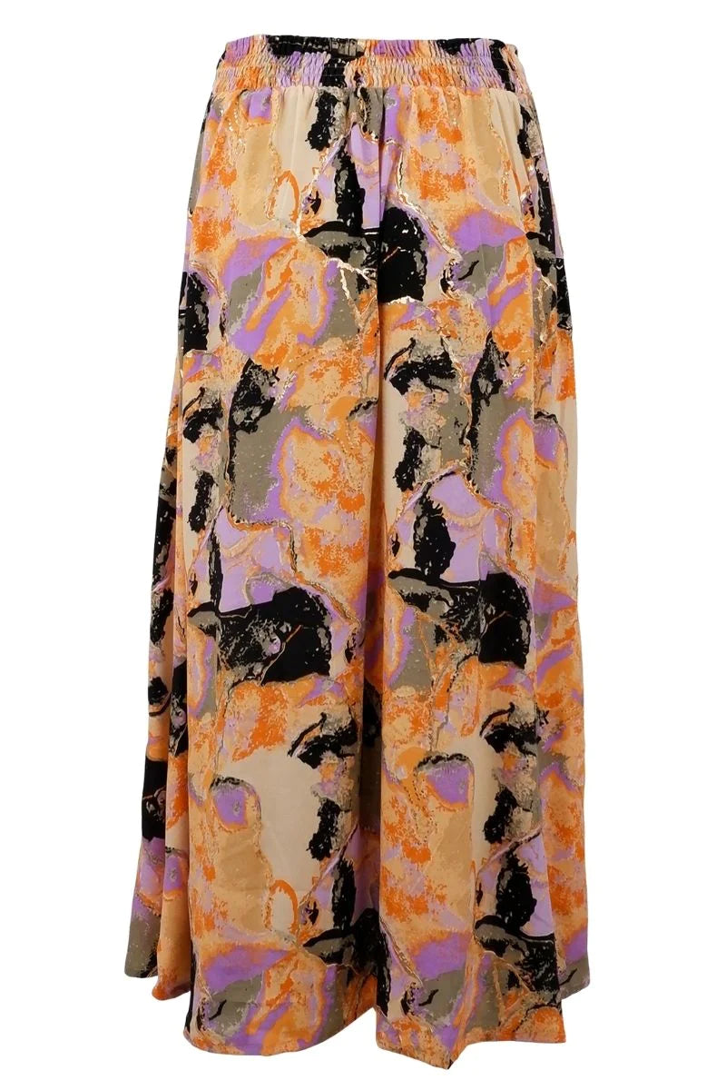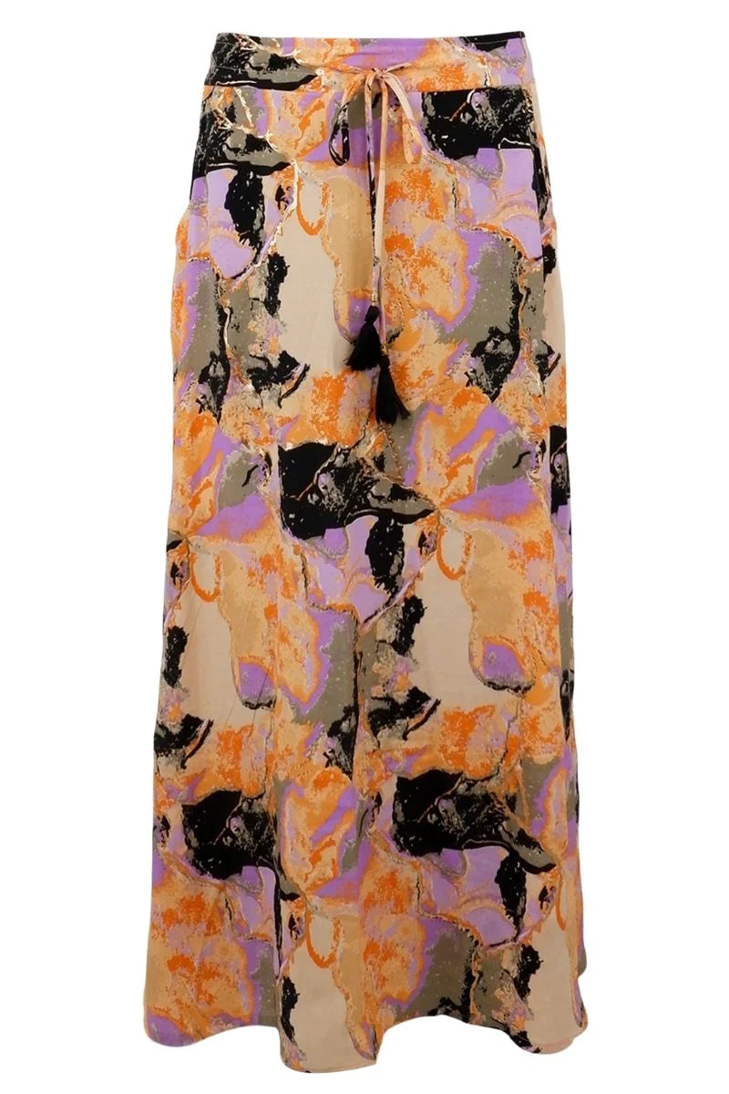 Skønneste nederdel fra Black Colour i et flot orange print. Nederdelen har elastik bagtil og snøre fortil.
