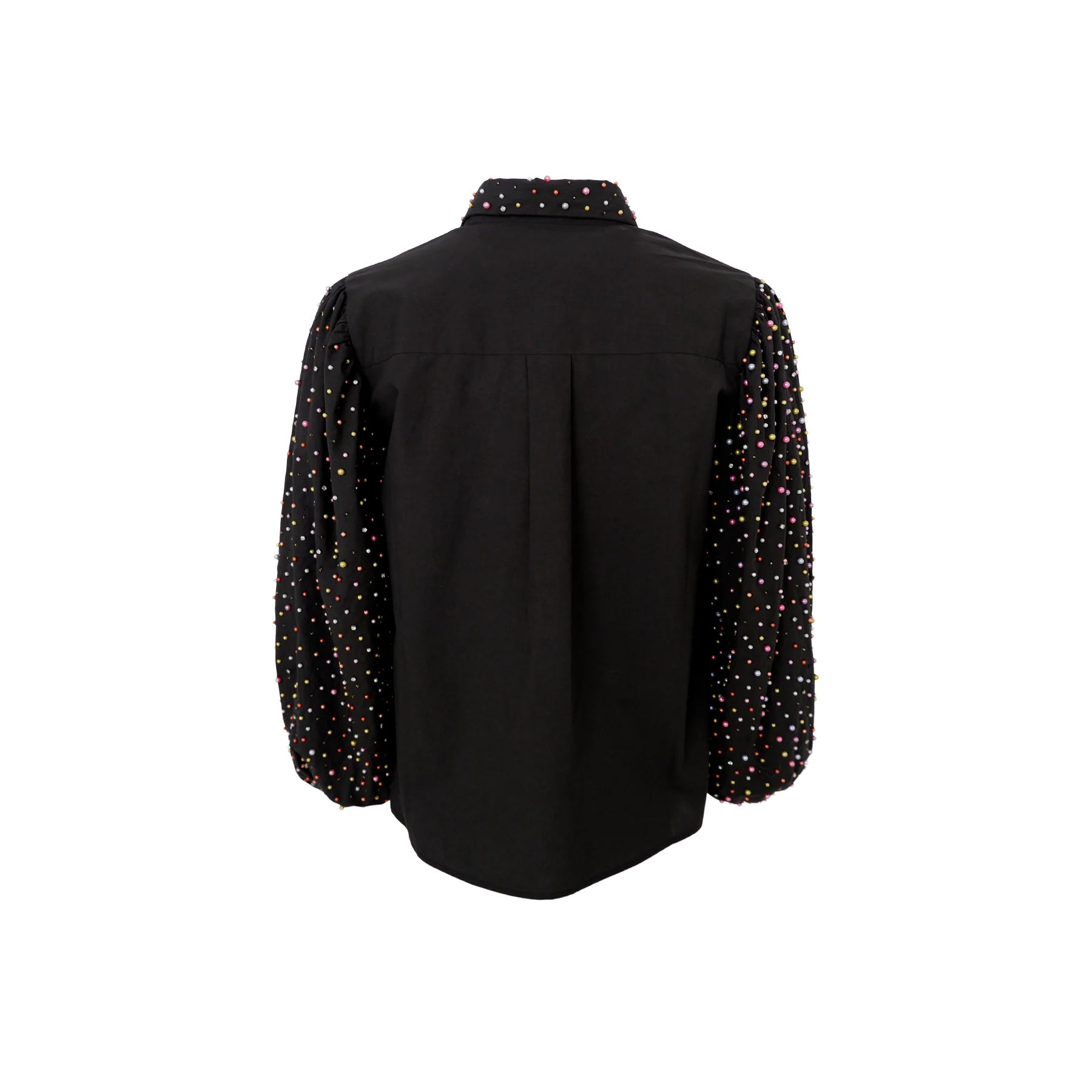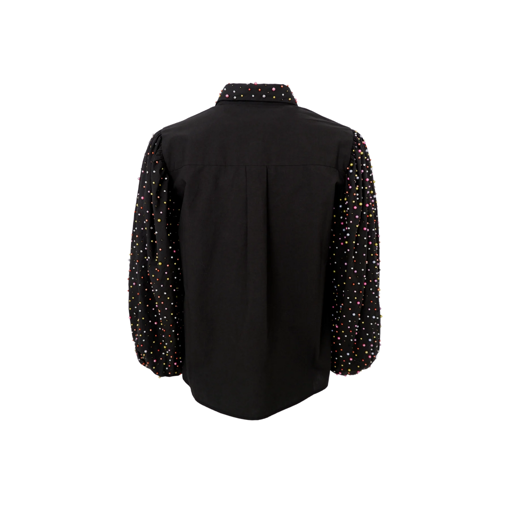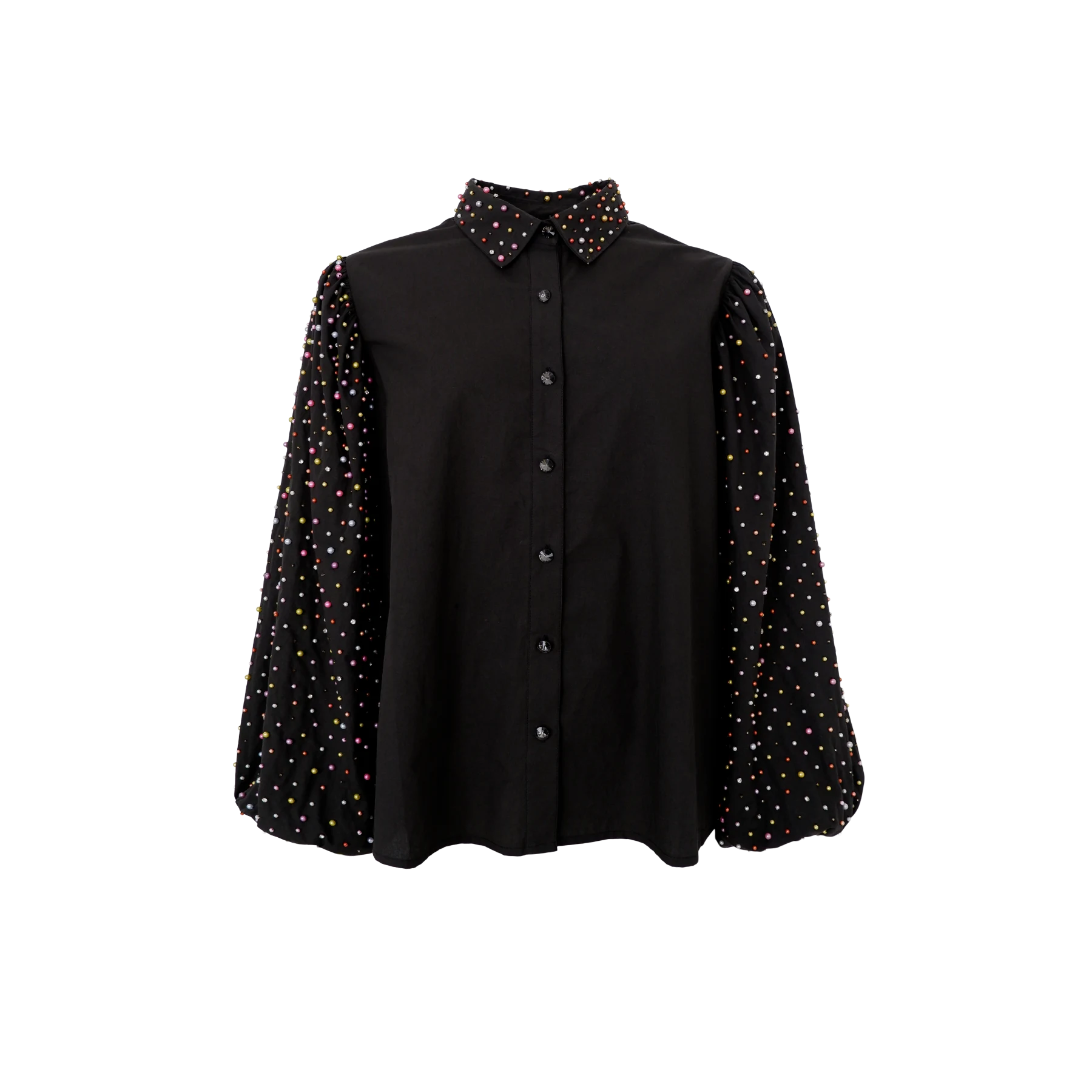 Smukkeste bluse fra Black Colour med små forskellig farvede perler