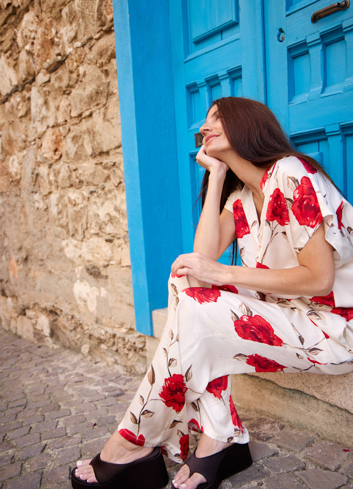 Lækre bukser fra Black Colour i det smukkeste blomsterprint på lys bund. Bukserne har elastik i taljen og en løs pasform så de falder smukt.
