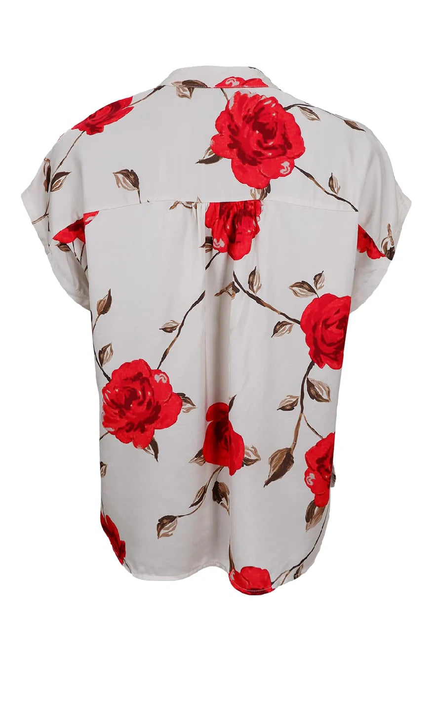 Skøn bluse fra Black Colour i det smukkeste blomsterprint på lys bund. Blusen er i ren viskose og har en løs pasform der falder smukt.