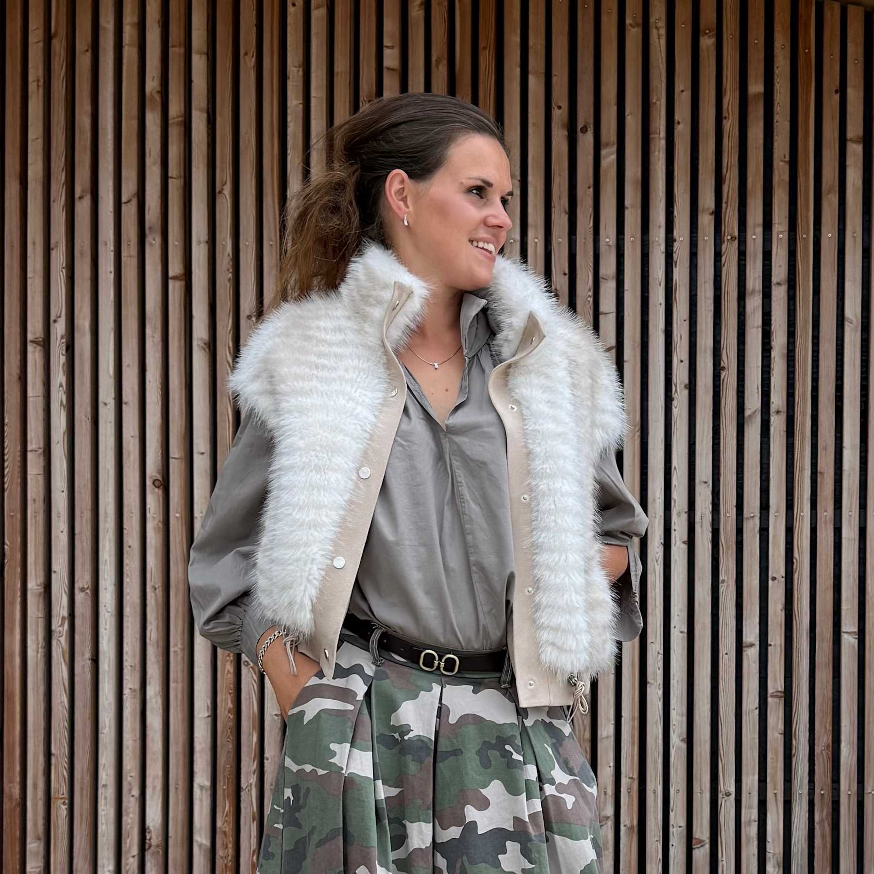 Top cool fake fur vest fra Cabana. Vesten er det perfekte styling item til at give dit outfit lidt ekstra kant og larm på den helt gode måde. Brug den til jeans, over kjoler, til strik eller en smuk bluse - styling mulighederne er mange!