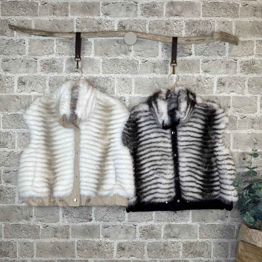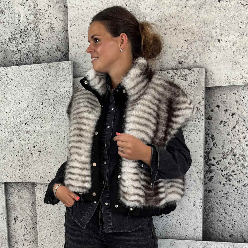 Top cool fake fur vest fra Cabana. Vesten er det perfekte styling item til at give dit outfit lidt ekstra kant og larm på den helt gode måde. Brug den til jeans, over kjoler, til strik eller en smuk bluse - styling mulighederne er mange!