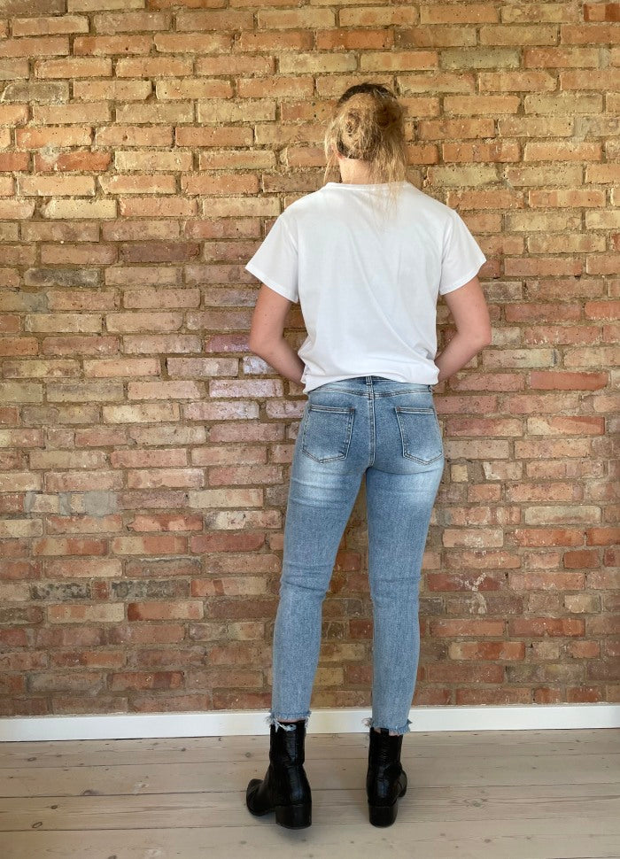 Cool rå jeans fra Cabana Living. Jeans er slim fit med masser af stretch og slid detaljer. Med rå afslutning og i en dejlig forårsvask.