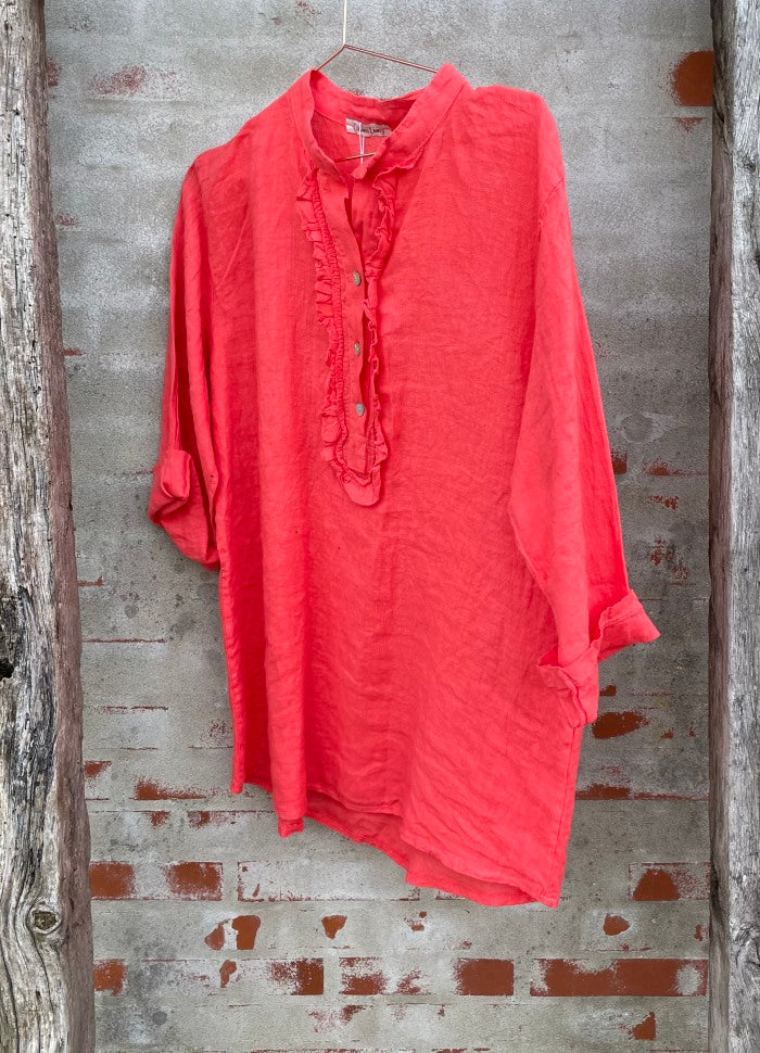 Lækker bluse fra Cabana Living. Blusen har stolelukning og 3/4 ærmer med opsmøg.