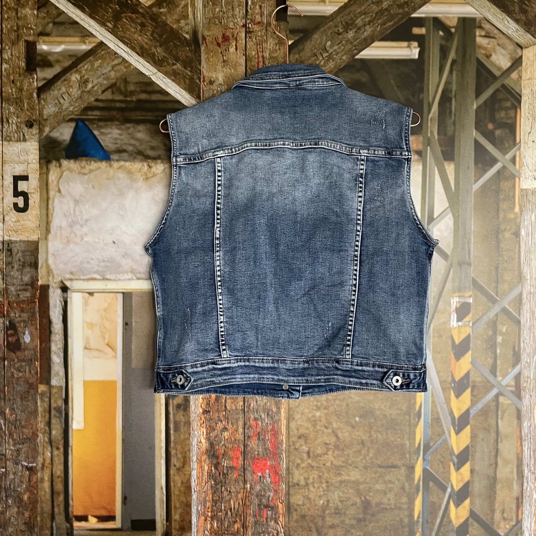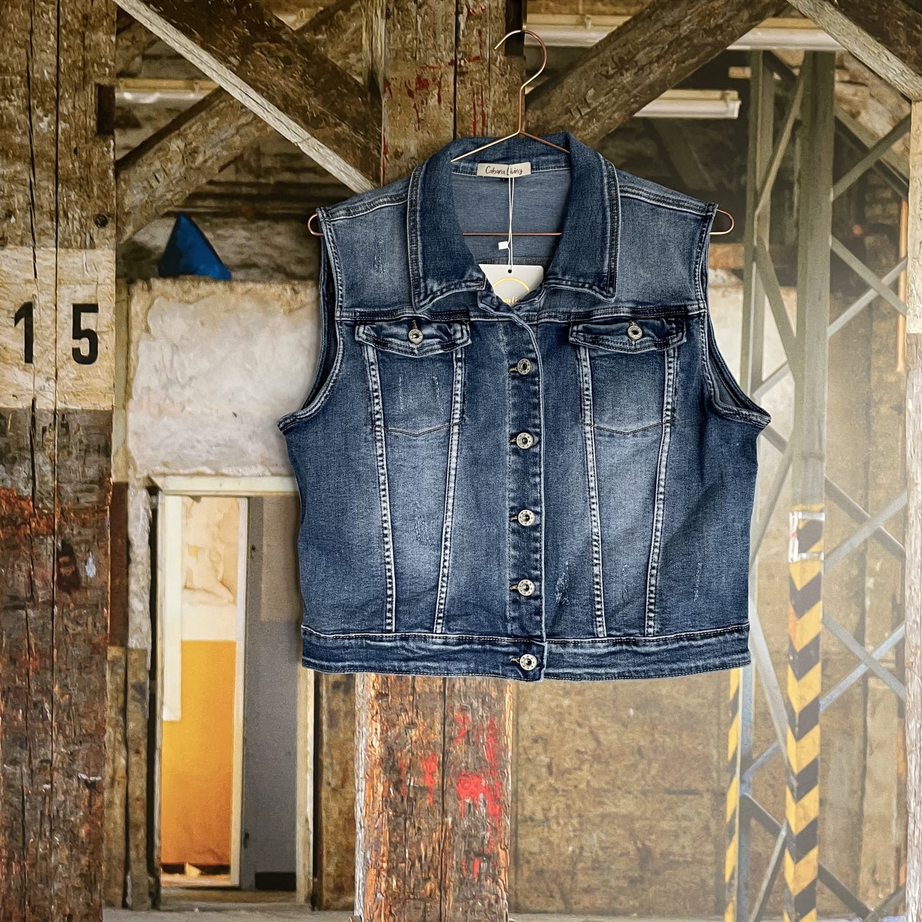 Klassisk denim vest med slid og brystlommer. Vesten er med krave og lukkes med knapper.