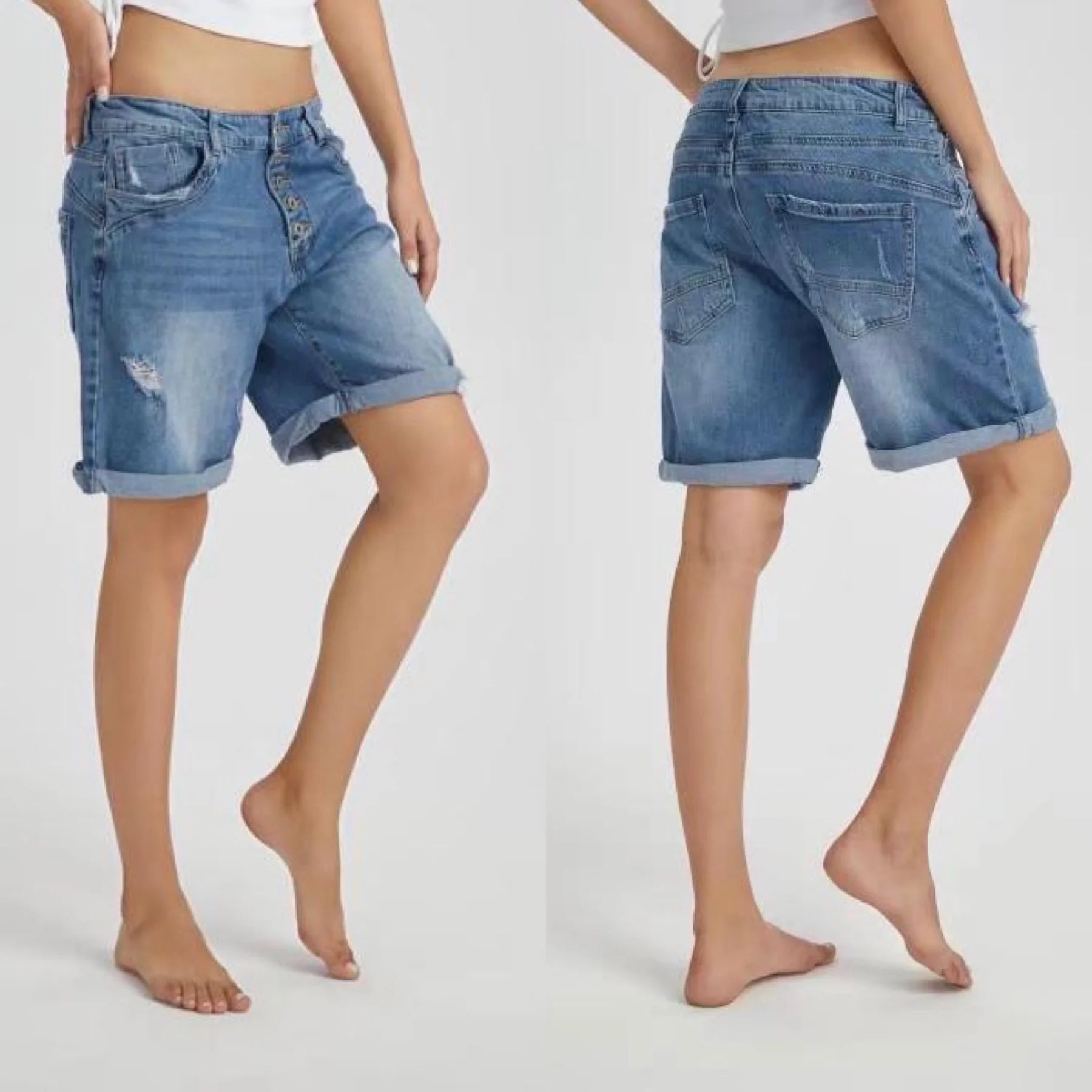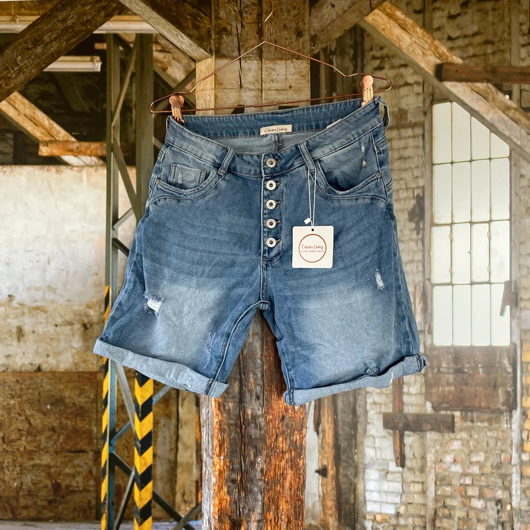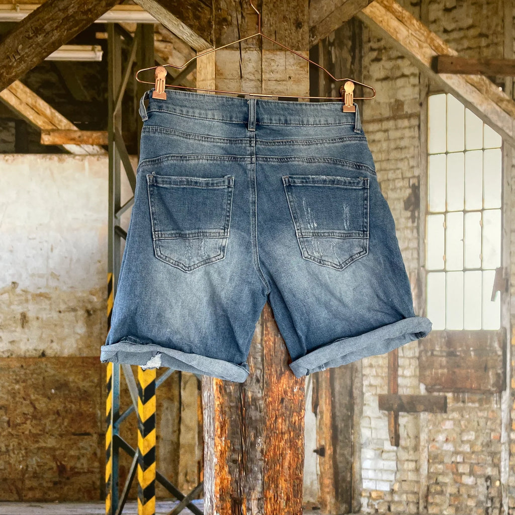Super cool denim shorts fra Cabana. Med let slitage, lynlås og bæltestropper.