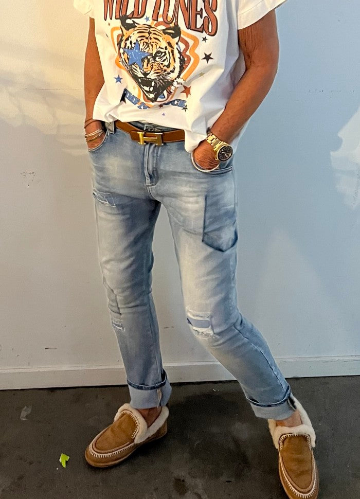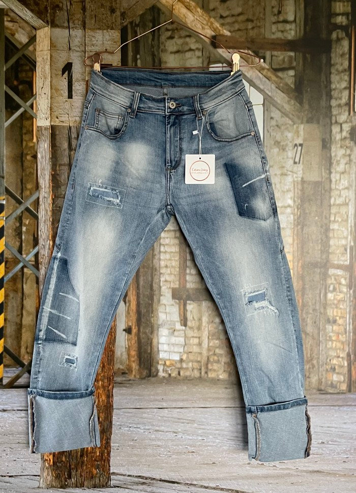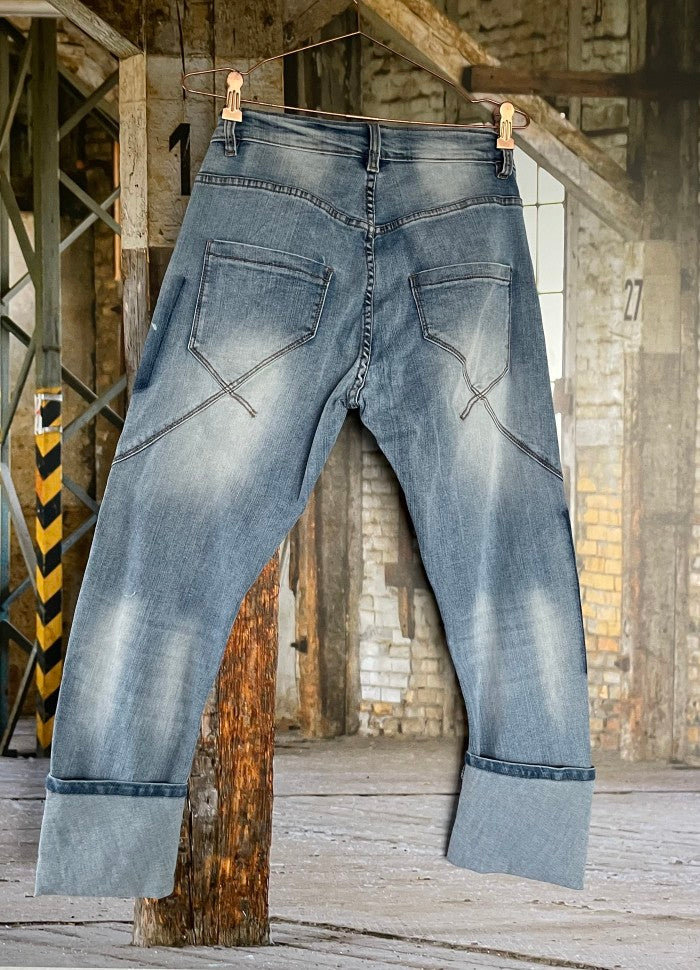 Lækker jeans med de fedeste detaljer og stretch fra Cabana Living. Buksebenet kan bruges med eller uden opsmøg. Store i størrelsen - gå et nummer ned !