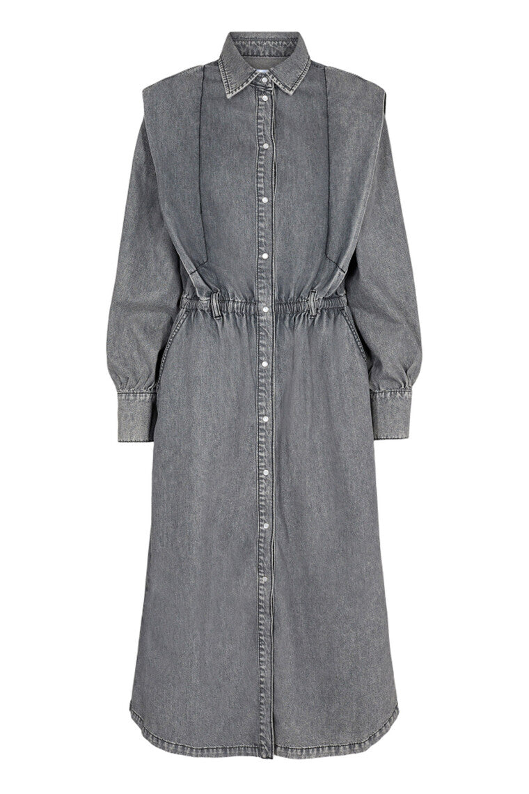 Cool denim kjole fra Co'couture med lange ærmer, skjortekrave i halsen og smarte detaljer over skulderne og langs fronten.