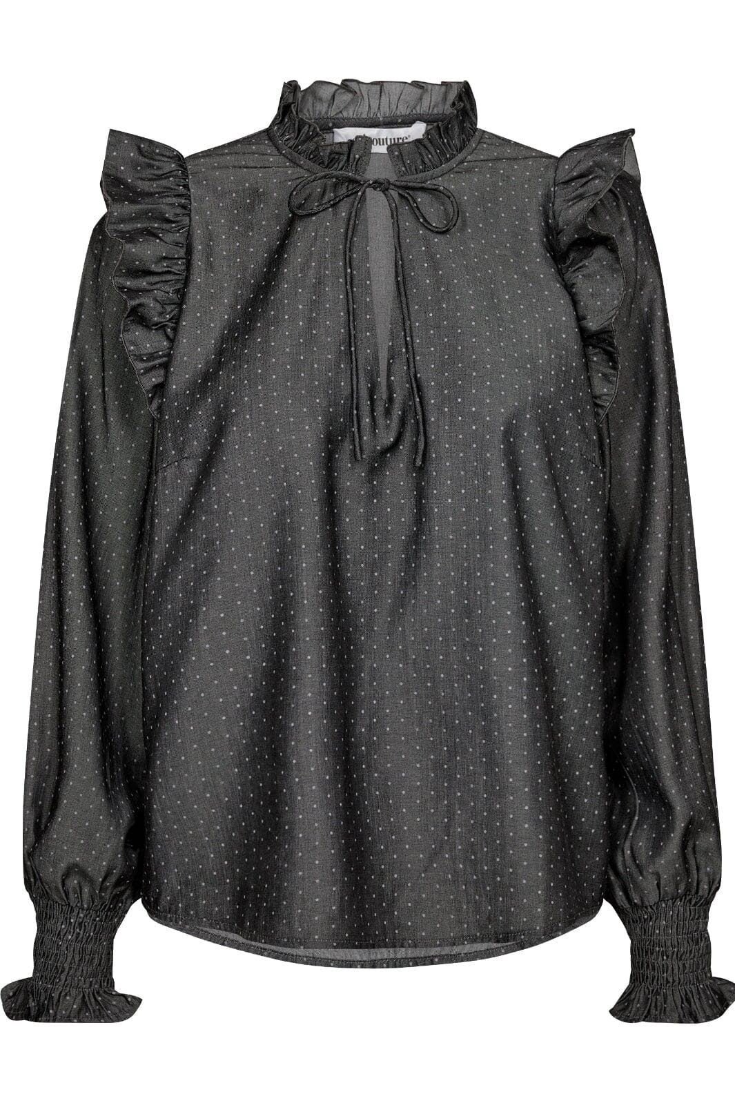 Co' Couture - Diana Dot Frill Blouse Mid Grey
