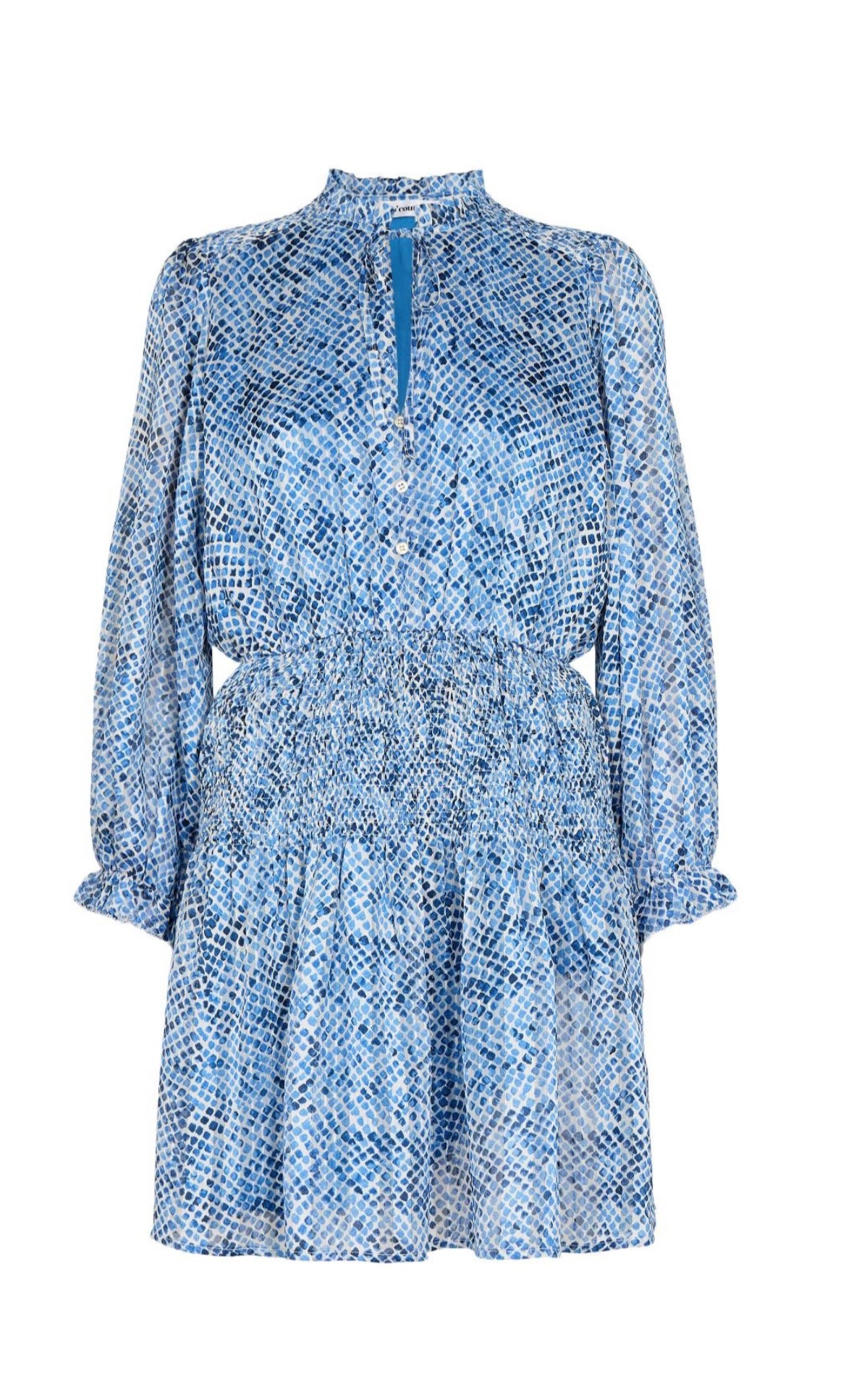 Smuk kjole fra Co´Couture i et skønt blå og hvid print. Kjolen er med smock detalje i taljen og knapper fortil.